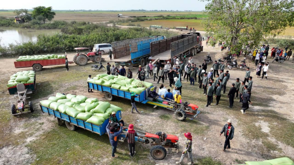 ក្នុងឱកាសនេះ ប្រជាកសិករនៅ ឃុំត្នោតជុំ ស្រុកបារ៉ាយណ៍ ខេត្តកំពង់ធំ បានបង្ហាញក្ដីរំភើបសប្បាយរីករាយប្រកបដោយស្នាមញញឹម និងមានកម្លាំងចិត្ត ក្រោយឃើញក្រុមការងារយុវជនបូជាការពារយុត្តិធម៌ បានចុះមកផ្ទាល់ជួយទិញស្រូវ។