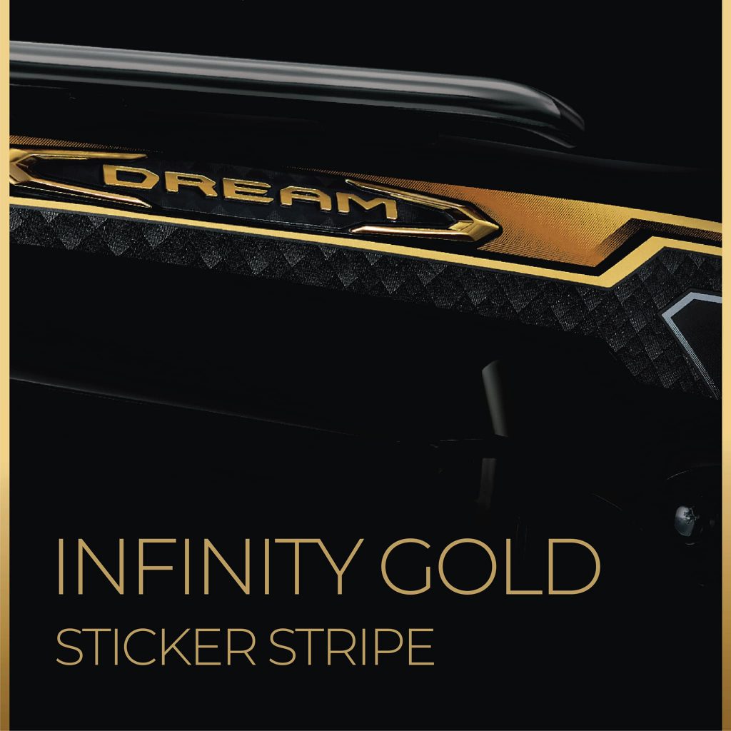 Honda DREAM “F O R E V E R G L O R Y” ម៉ូដែលថ្មី នាំមកនាំមកការផ្លាស់ប្តូរមួយចំនួន។ អ្វីដែលពិសេសបំផុតគឺការរចនាថ្មីទាំងស្រុងដោយ តែមសងខាងនៃផ្នែកខាងមុខ រចនាឡើងដោយបន្ទះមាសប្រណិតបំផុត រំលេចដោយផ្ទៃរចនាដោយចំណិតពេជ្រផុសឡើងយ៉ាងត្រដែត ស្រស់ស្អាតទាន់សម័យ ព្រមទាំងនិមិត្តសញ្ញា Honda DREAM រូបរាងថ្មី ពណ៌មាសក្រូម៉េរលើបរលោងភ្លឺចែងចាំង រចនាម៉ូតបែបចំនិតពេជ្រផ្គុំបញ្ចូលគ្នា។