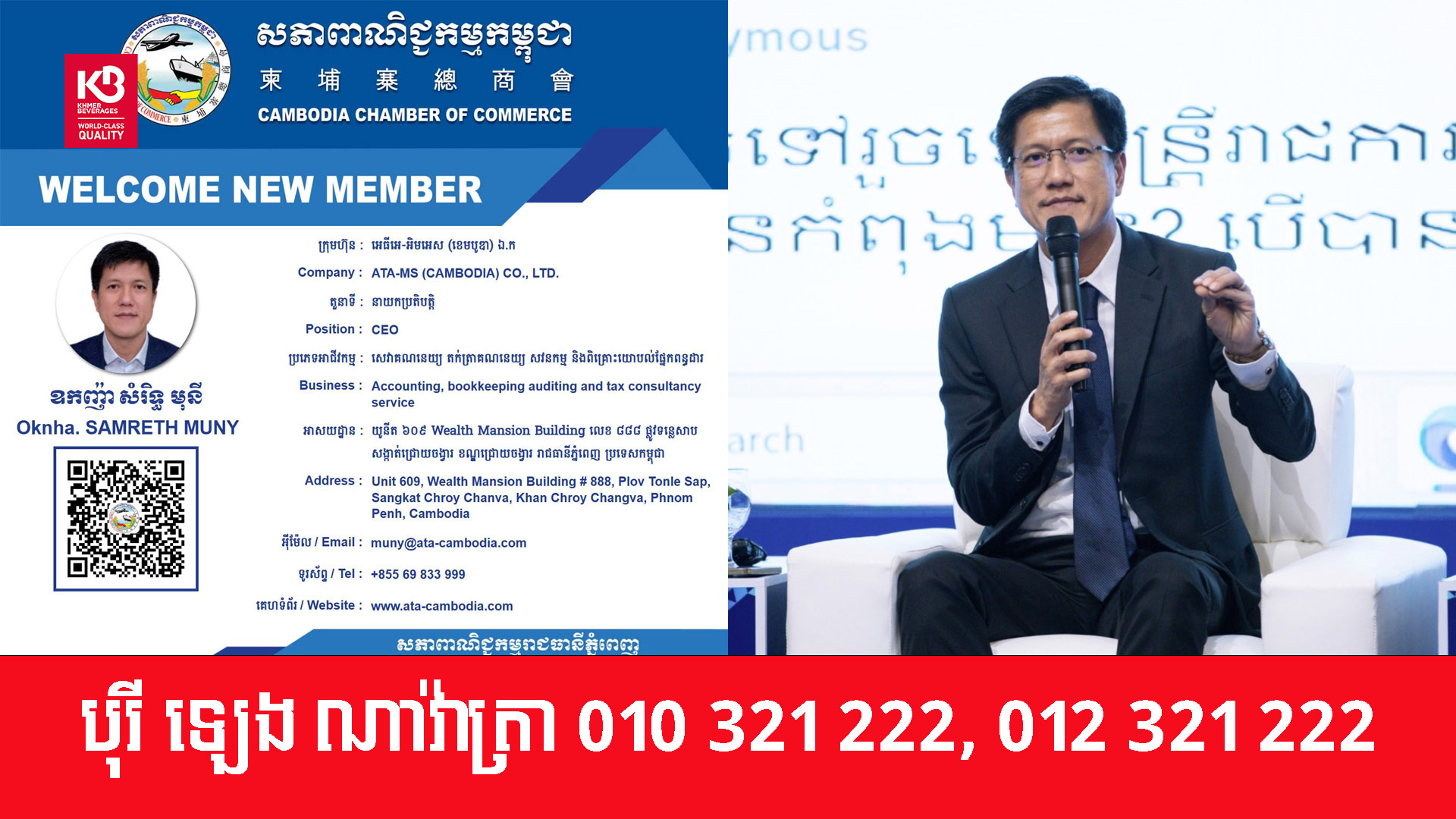 ឧកញ៉ា សំរិទ្ធ មុនី នាយកប្រតិបត្តិក្រុមហ៊ុន ATA-MS (Cambodia) ក្លាយជាសមាជិកថ្មី នៃសភាពាណិជ្ជកម្មកម្ពុជា