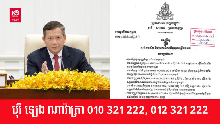 សម្តេចធិបតី ហ៊ុន ម៉ាណែត ចេញអនុក្រឹត្យផ្ទេរភារកិច្ច និងតែងតាំងអភិបាលក្រុង ស្រុក ចំនួន ៥រូប នៅខេត្តតាកែវ
