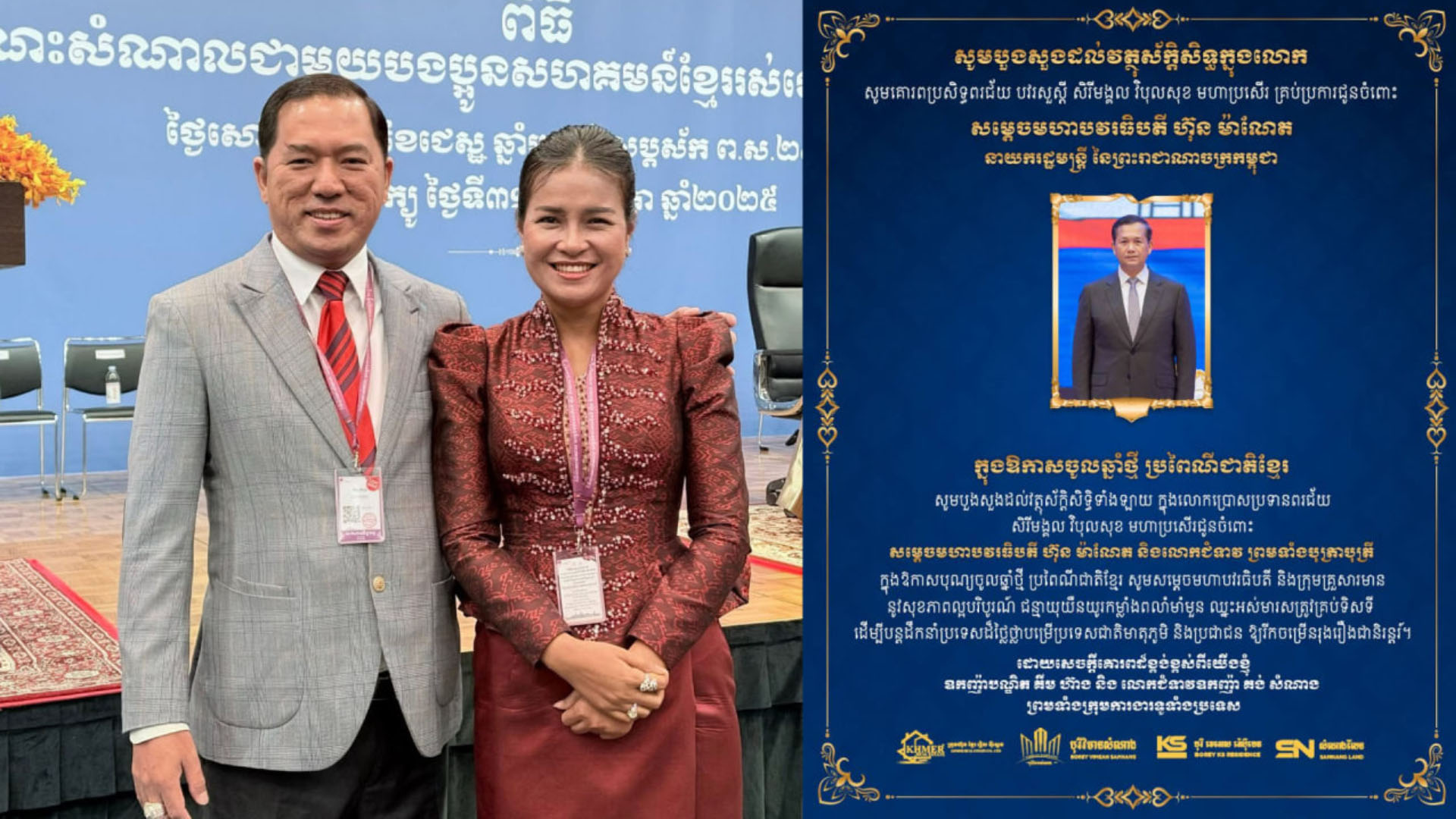 ឧកញ៉ា បណ្ឌិត គីម ហ៊ាង និងលោកជំទាវ ឧកញ៉ា គង់ សំណាង ផ្ញើសារលិខិតគោរពជូនពរ សម្តេចមហាបវរធិបតី ហ៊ុន ម៉ាណែត និងលោកជំទាវ ក្នុងឱកាសបុណ្យចូលឆ្នាំថ្មី