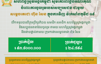 សហព័ន្ធស្រូវអង្ករកម្ពុជា ចូលរួមបរិច្ចាគថវិកា ជូនរាជរដ្ឋាភិបាលកម្ពុជាទិញវ៉ាក់សាំងការពារកូវីដ១៩