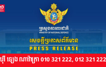 ក្រសួងការពារជាតិ ប្រកាសបដិសេធនូវការចោទប្រកាន់ទាំងឡាយរបស់ថៃ ជុំវិញករណីជនជាតិចិនដើរជាន់មីន នៅតំបន់ព្រំដែនកម្ពុជា-ថៃ