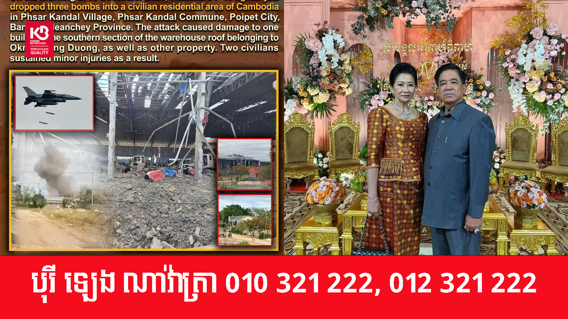 អគារឃ្លាំងរបស់ឧកញ៉ា វង្ស ដួង រងការខូចខាតស្ទើរទាំងស្រុង ដោយសារយន្តហោះ F-16 ថៃ ទម្លាក់គ្រាប់នៅក្រុងប៉ោយប៉ែត