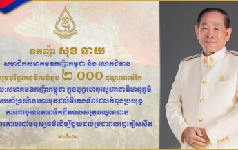ឧកញ៉ា សុខ ឆាយ និងលោកជំទាវ ចូលរួមបរិច្ចាគថវិកា ២,០០០ដុល្លារ តាមរយៈសមាគមឧកញ៉ាកម្ពុជា គាំទ្រយ៉ាងមោះមុតដល់វីរកងទ័ពជួរមុខ
