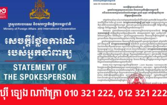 អ្នកនាំពាក្យក្រសួងការបរទេស ប្រកាសបដិសេធលើការធ្វើត្ថាធិប្បាយ ដោយយកប្រសាសន៍របស់ឯកឧត្តមរដ្ឋមន្ត្រី ទៅបំភ្លៃខុសខ្លឹមសារពិត ថា កម្ពុជា«សុខចិត្តកាត់ដី ឱ្យតែថៃឈប់ឈ្លាន័ពាន តែថៃមិនព្រម»