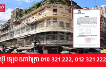 ក្រសួងរៀបចំដែនដី នឹងចុះធ្វើអត្តសញ្ញាណកម្មប្រជាពលរដ្ឋរស់នៅក្នុងអគារអតីត សណ្ឋាគារសុខមានជ័យអគារ នៅខណ្ឌ៧មករាយៈពេល ៣ថ្ងៃ ចាប់ពីថ្ងៃទី២៥-២៧ ខែមីនានេះ