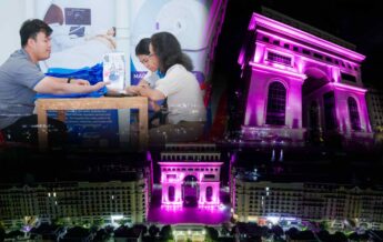 អគារ ដឹ អេលីហ្សេនៅកោះពេជ្រ បានបំភ្លឺពណ៌ផ្កាឈូក និងផ្តល់ការត្រួតពិនិត្យមហារីកសុដន់ឥតគិតថ្លៃសម្រាប់ស្ត្រី