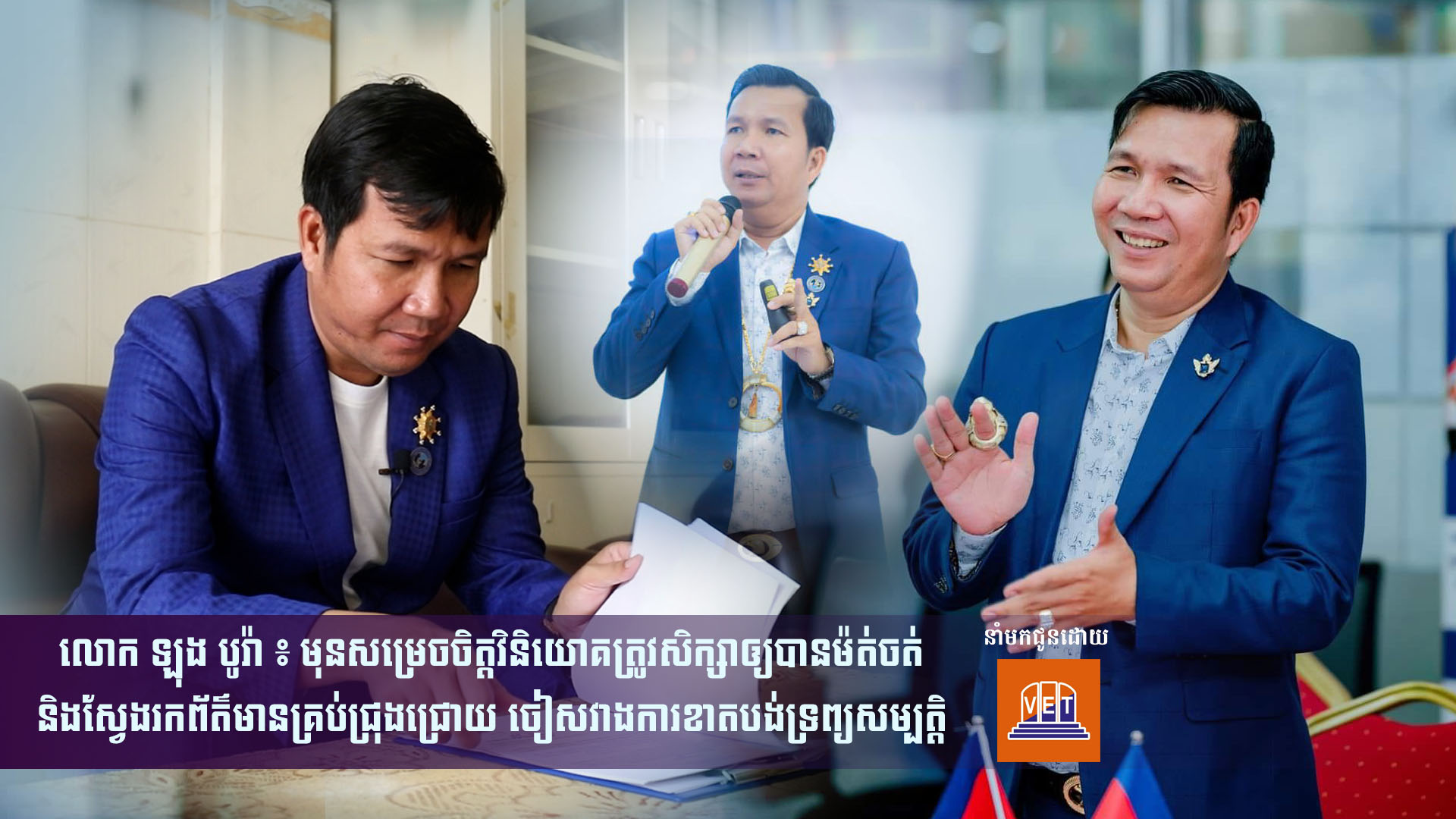 លោក ឡុង បូរ៉ា៖ មុនសម្រេចចិត្តវិនិយោគត្រូវសិក្សាឲ្យបានម៉ត់ចត់ និងស្វែងរកព័ត៌មានគ្រប់ជ្រុងជ្រោយ