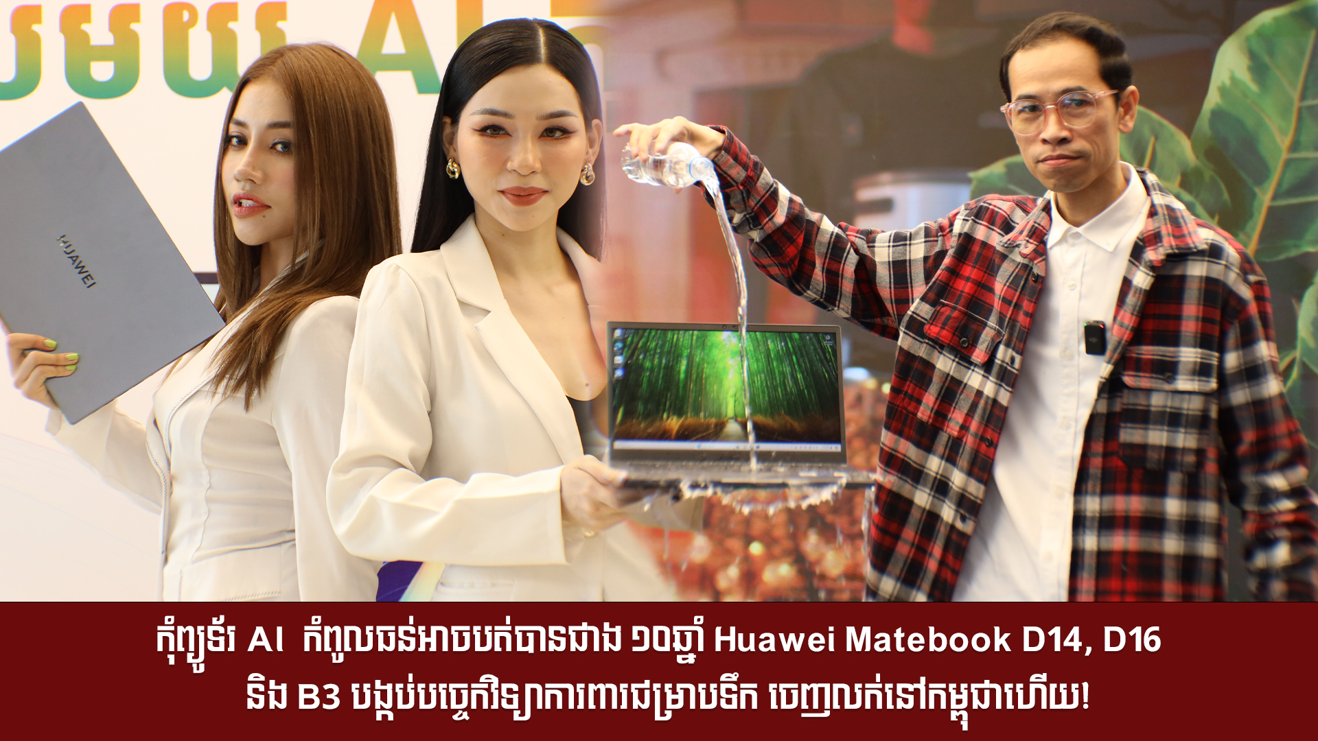 គួររំលឹកផងដែរថា កម្មវិធីដាក់សម្ពោធ កុំព្យូទ័រ AI HUAWEI Matebook Series និង ឧបករណ៍ Wi-Fi ស៊េរីថ្មីនេះ មានការអញ្ជើញចូលរួមពីសំណាក់ថ្នាក់ដឹកនាំក្រុមហ៊ុនហួវៃ ដៃគូរសហការ លោក Jerry Thai អគ្គនាយកក្រុមហ៊ុន និងជាស្ថាបនិកអាជីវកម្ម ប្រាប់ចំៗ (BrabChomChom) បវរកញ្ញា និង មិត្តអ្នកសារព័ត៌មានល្បីៗប្រចាំប្រទេសកម្ពុជា៕
