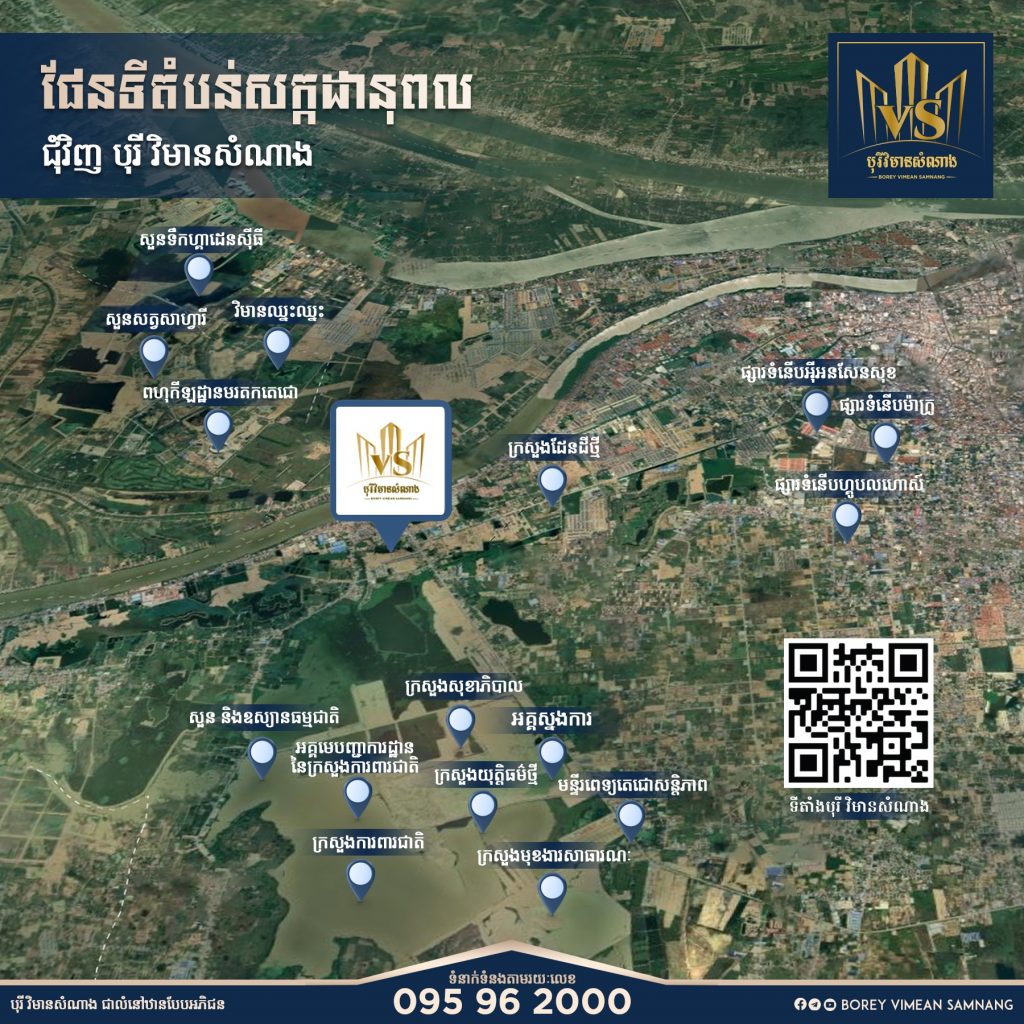 ទីតាំង បុរី វិមានសំណាង គឺនៅតំបន់ដែលមានការអភិវឌ្ឍន៍ខ្លាំងដែលនៅជុំវិញ មានដូចជាផ្សារទំនើបល្បីៗ ក្រសួងធំៗជាច្រើន និងនៅកៀកនឹងកីឡដ្ឋានមរតកតេជោ។
