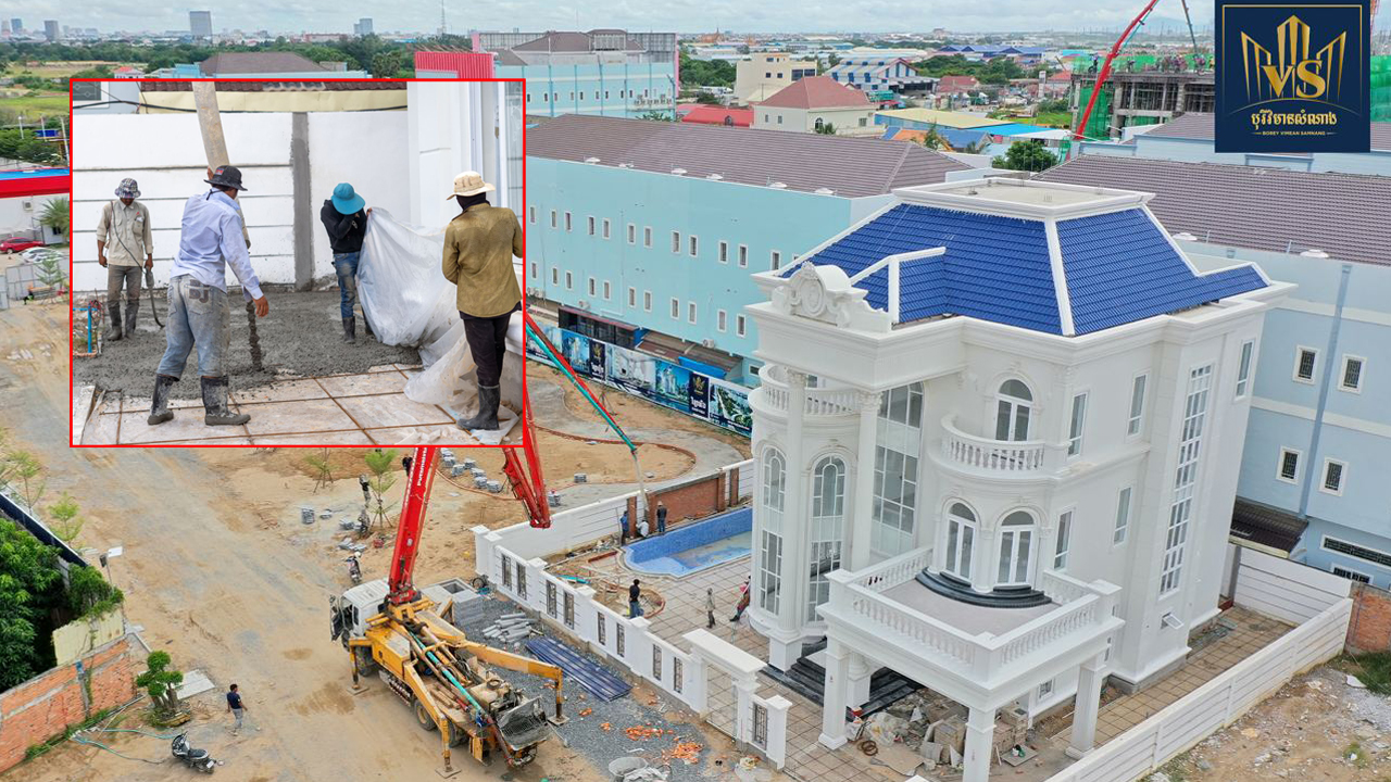 ផ្ទះគំរូ វីឡាឃ្វីន របស់បុរី វិមានសំណាង ដែលជាផ្ទះវីឡាលំដាប់អភិជន កំពុងតែសម្រុកសាងសង់ស្ទើរតែរួចរាល់ ១០០% ហើយ ខណៈដែលបច្ចុប្បន្ននេះក្រុមការងារជំនាញ កំពុងធ្វើការចាក់បេតុងនៅក្នុងទីធ្លារបរិវេណផ្ទះ។ បុរី វិមានសំណាង នៅតែបន្តការសាងសង់ជូនអតិថិជន ដើម្បីធានាផ្តល់ជូនវីឡាប្រណីតក្នុងក្តីស្រមៃរបស់លោកអ្នក ឱ្យបានទាន់ពេលវេលា។