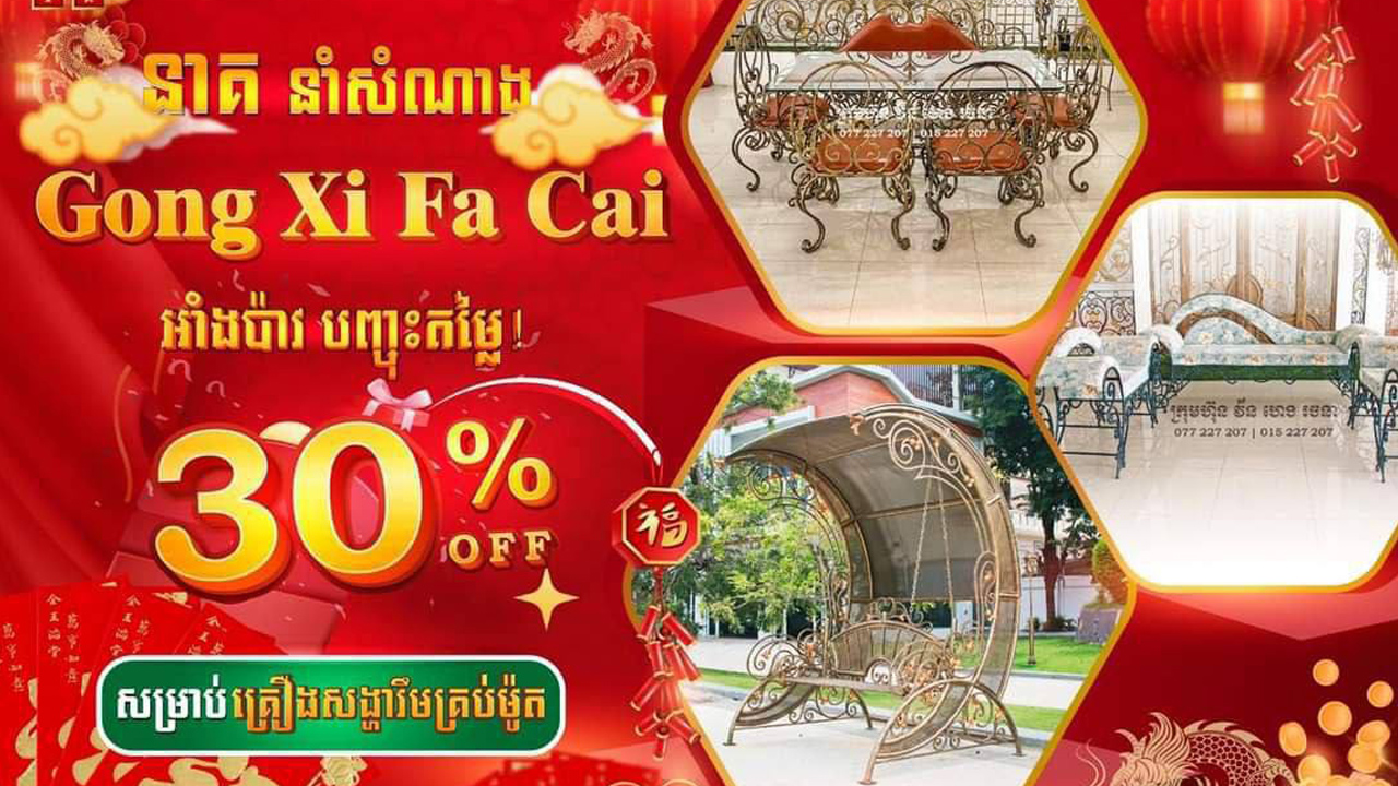 អបអរចូលឆ្នាំចិន! ក្រុមហ៊ុន វីនហេង រចនា ដែកស្មិត ចែកអាំងប៉ាវពិសេស បញ្ចុះតម្លៃដល់៣០% លើគ្រឿងសង្ហារឹមគ្រប់ម៉ូដ