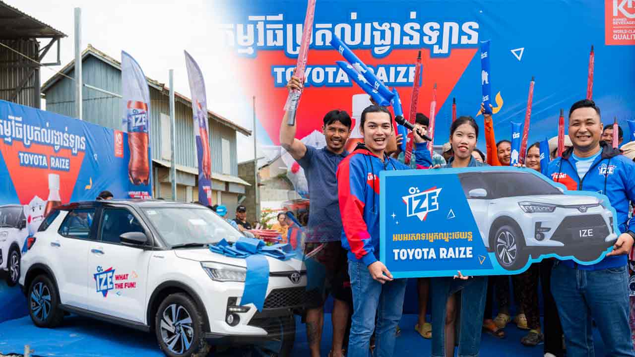 ភ្នំពេញ៖ កូនខ្មែរមួយរូបនៅខេត្តកំពង់ស្ពឺ បានយកលុយ ២,៥០០រៀល តែប៉ុណ្ណោះ ទៅទិញបានរថយន្តស៊េរីថ្មី TOYOTA RAIZE ដ៏ថ្មីស្រឡាង ១គ្រឿង ហើយបានទៅប្រាប់គ្រួសារ បែរជាពួកគាត់គិតថាជា Prank ទៅវិញ។ កូនខ្មែរម្នាក់នេះមានឈ្មោះថា លាង ស្រីណាត ដោយគាត់បានទិញ ទឹកក្រូច អាយស៍ កូឡា របស់ក្រុមហ៊ុន ខ្មែរ ប៊ែវើរីជីស មួយដប ដែលមានតម្លៃត្រឹមតែ ២,៥០០រៀល ប៉ុណ្ណោះ តែជាថ្ងៃហេងក៏ថាបាន ស្រាប់តែពេលមួលគម្រប ទឹកក្រូច អាយស៍ កូឡា មក ក៏ឃើញមានរូបរថយន្ត TOYOTA RAIZE នៅក្នុងគម្របតែម្ដង។