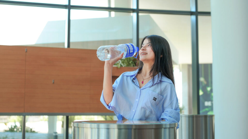 កាន់តែប្លែក សូមណែនាំពីរបៀប ញ៉ាំទឹកតាមបែបស្រលាញ់បរិស្ថាន នៃទឹកពិសាកម្ពុជាចំណុះ១.៥ លីត្រ គឺ៖ ជំហានទី១ នៅពេលដែលទឹកនៅពេញដប អ្នកអាចចាប់ទ្រដៃម្ខាងពីផ្នែកខាងក្រោម និងកាន់ដៃម្ខាងទៀតនៅចំកណ្ដាលនៃដប ដើម្បីលើកយកមកញ៉ាំ ទើបមិនធ្វើឱ្យទឹកកំពប់ និងជំហានទី២ នៅពេលដែលទឹកនៅពាក់កណ្ដាល អ្នកគ្រាន់តែកាន់នៅត្រង់ចំណុចកណ្ដាលនៃដប រួចលើកយកមកញ៉ាំ នោះនឹងធ្វើឱ្យមានភាពងាយស្រួល និងញ៉ាំទឹកបានច្រើនជាងមុន។