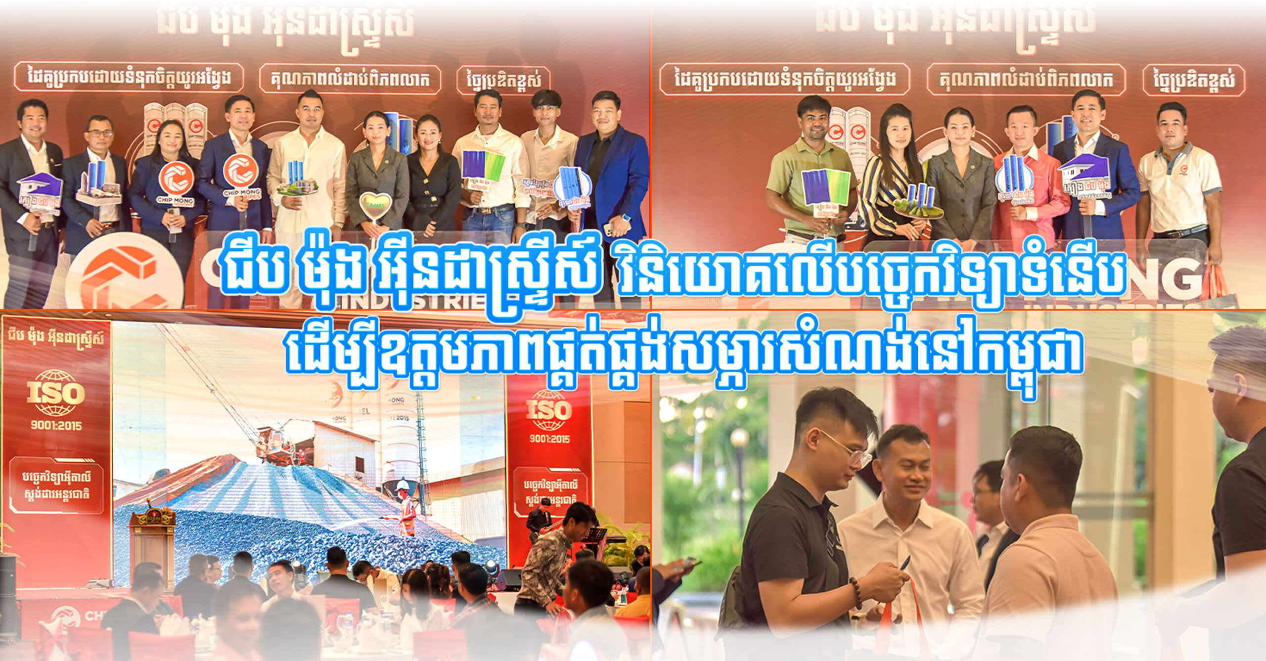 ជីប ម៉ុង អុីនដាស្ទ្រីស៍ ដែលជាក្រុមហ៊ុនឈានមុខគេក្នុងការផ្គត់ផ្គង់បេតុងលាយស្រេចចាប់តាំងពីឆ្នាំ២០០៧ រហូតបន្តផ្គត់ផ្គង់ក្បឿង និងទុយោ រួមជាមួយក្រុមហ៊ុនសម្ភារសំណង់ផ្សេងៗទៀតដែលជាបុត្រសម្ព័ន្ធ ជីប ម៉ុង គ្រុប បានរៀបចំពិធីជួបជុំដៃគូពាណិជ្ជកម្ម ជាមួយក្រុមហ៊ុន និងដេប៉ូចែកចាយដែលជាដៃគូសហការ កាលពីថ្ងៃទី៧ វិច្ឆិកា ២០២៤ នៅខេត្តព្រះសីហនុ ដើម្បីអបអរភាពជោគជ័យនៃដៃគូប្រកបដោយទំនុកចិត្តយូរអង្វែង និងការបន្តពង្រឹងទំនាក់ទំនងយ៉ាងរឹងមាំសម្រាប់អនាគត ជាមួយនឹងគុណភាពផលិតផលឈានមុខ និងសេវាកម្មដ៏យកចិត្តទុកដាក់បំផុតជូនអតិថិជន។
