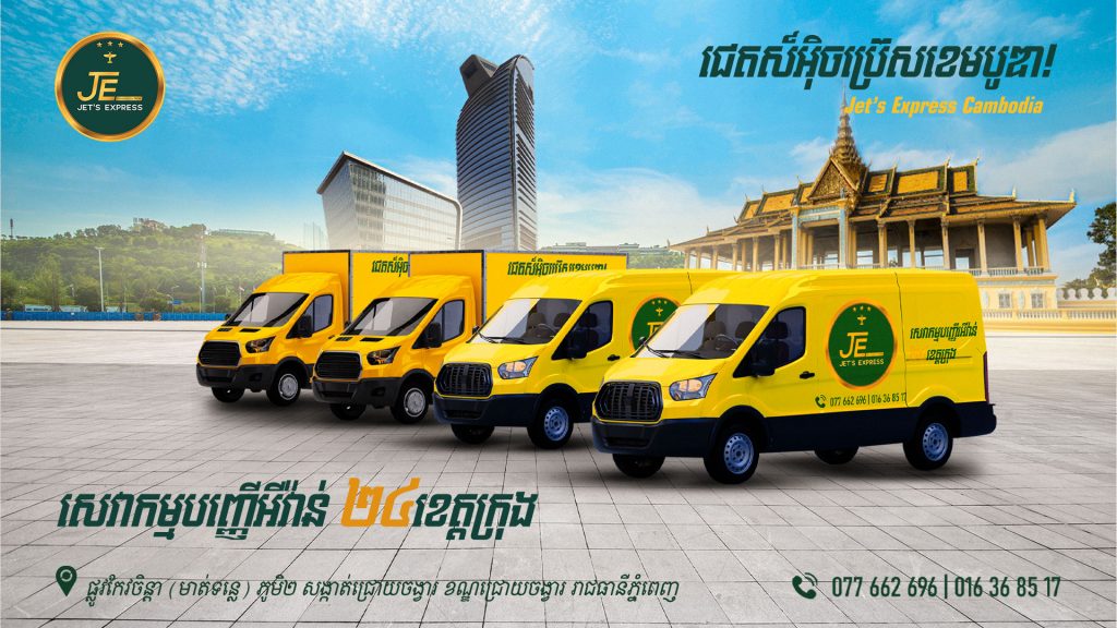 Jet’s Express Cambodia គឺចូលខ្លួនមកបំរើសវេាកម្មជូនបងប្អូន ក្នុងការជួយសម្រួល និងដោះស្រាយបញ្ហាពេលវេលាអតិថិជនដែលមមាញឹករវល់ជាមួយការងារ គ្រប់គ្រងសហគ្រាសឬ អាជីវកម្ម ត្រូវការបញ្ញើឥវ៉ាន់ទៅតាមបណ្តាលរាជធានី/ខេត្តទាំង២៥ ទទួលបញ្ញើឥវ៉ាន់ដោយសុវត្ថិភាពរហ័ស តម្លៃសមរម្យ និងទំនុកចិត្តខ្ពស់។