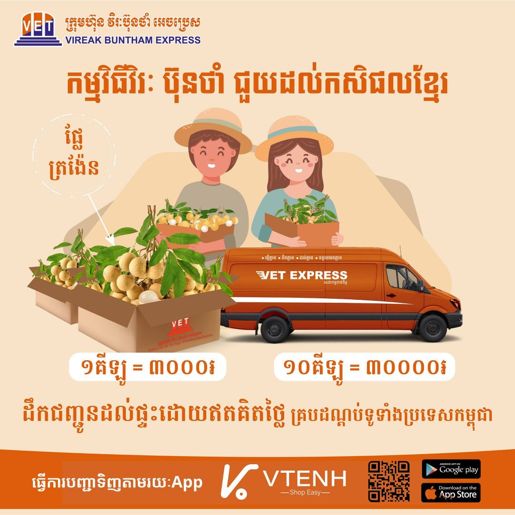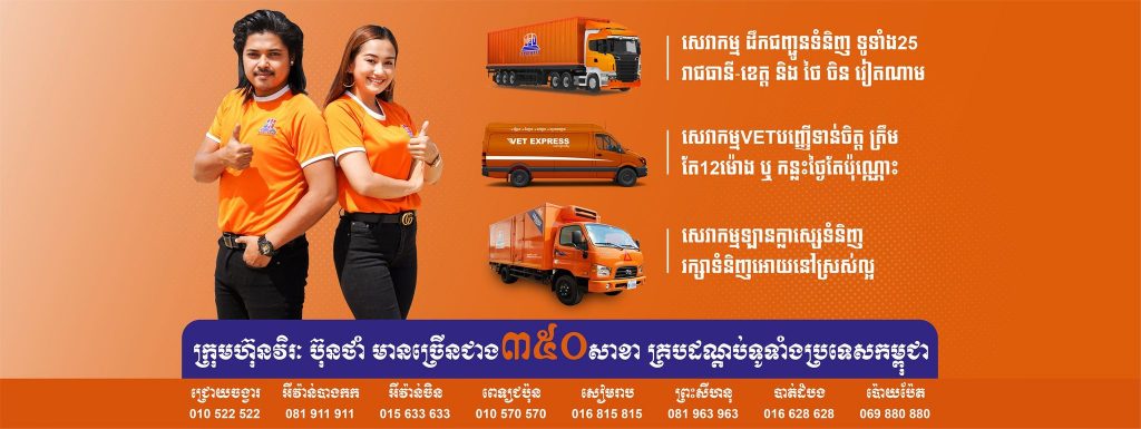សូមបញ្ជាក់ថា គាំទ្រអាជីវកម្មក្នុងស្រុក គាំទ្រក្រុមហ៊ុនវីរៈ ប៊ុនថាំ អេច​ប្រេស ដែលជាក្រុមហ៊ុនខ្មែរឈានមុខ​គេតែមួយគត់បានកសាងឡើងដោយស្ថាបនិកខ្មែរសុទ្ធសាធតាំងពីឆ្នាំ ២០០៤ នឹងបានពង្រីកបានជាង​​ ៣៥០ សាខាគ្របដណ្ដប់ទូទាំងព្រះរាជាណាចក្រកម្ពុជា​ ព្រមទាំងសេវាកម្មដ៏សំបូរបែបក្នុងការបញ្ញើទំនិញក្នុង និងក្រៅប្រទេស៊៕