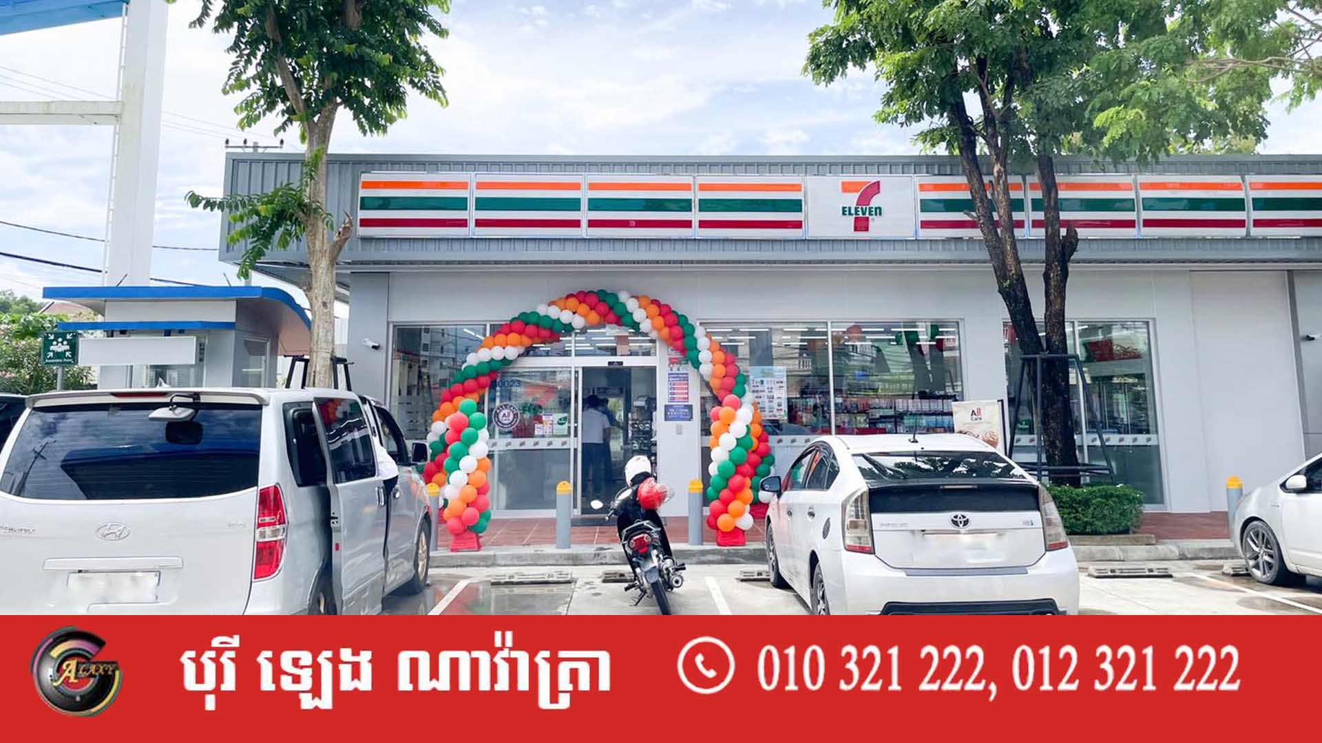 ហាង សេវេន អ៉ីឡេវេន 7-Eleven Cambodia បើកនៅកម្ពុជា ១ឆ្នាំហើយជាមួយនឹងការពង្រីកសាខា ៧ ខេត្ត/ក្រុង ដែលស្ថិតនៅទីតាំងក្នុងទីប្រជុំជន និងនៅក្នុងស្ថានីយប្រេងឥន្ធនៈ។ ក្នុងនោះ ៧ខេត្តក្រុងទូទាំងប្រទេសរួមមាន៖ រាជធានីភ្នំពេញ កំពង់ចាម បន្ទាយមានជ័យ សៀមរាប កំពង់ស្ពឺ កំពង់ឆ្នាំង និងខេត្តព្រះសីហនុ ដែលជាខេត្តទើបតែមានសាខាបើកថ្មីក្នុងខែសីហាកន្លងទៅនេះ។