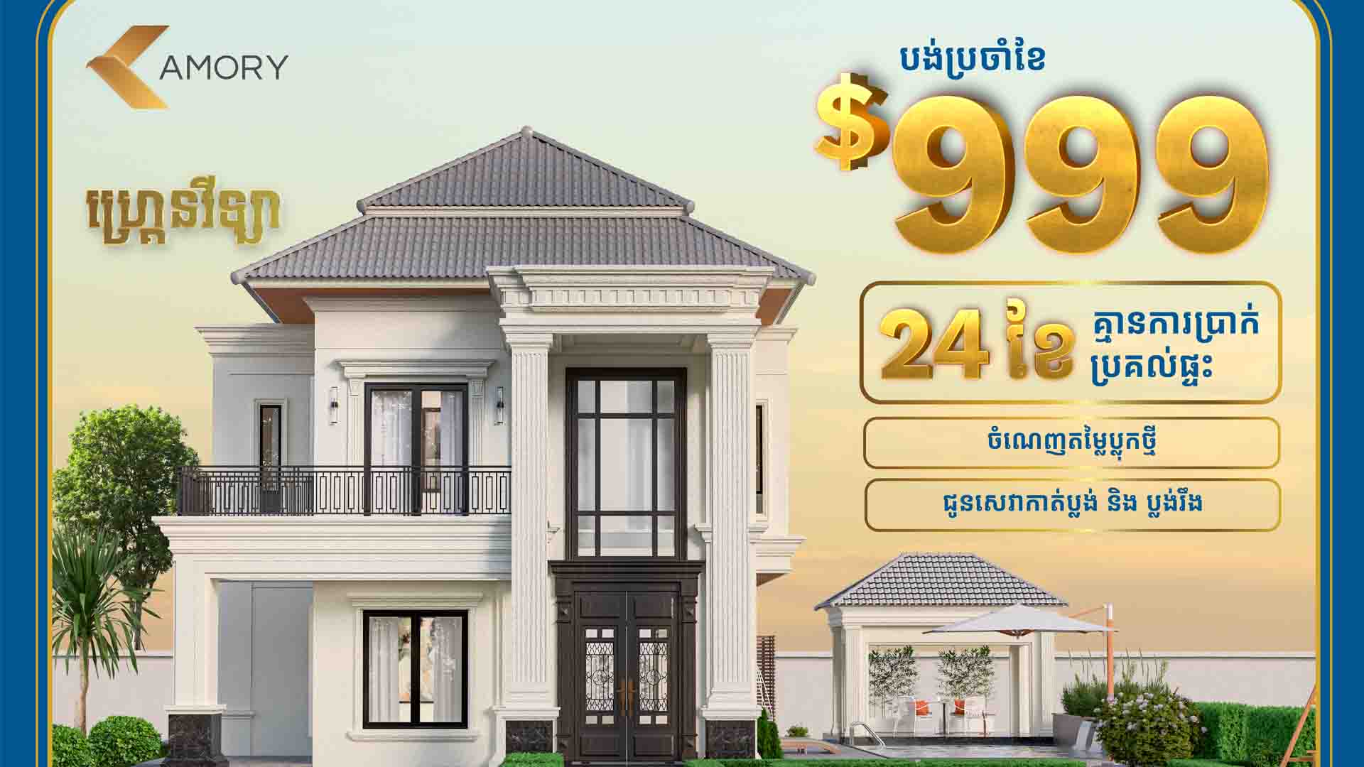 ថ្ងៃទី០៧ មីនា២០២៣ ទីបំផុតអ្វីដែលលោកអ្នកកំពុងទន្ទឹងរង់ចាំ បានមកដល់ហើយ ក្រុមហ៊ុន អាម៉ូរីឌីវេឡុបម៉ិន ឯ.ក បង្ហាញវត្តមានជាផ្លូវការនូវ ហ្រ្គេនវីឡាម៉ូដថ្មី ទំនើប ស៊ីវិល័យដាច់គេ ក្នុងតម្លៃពិសេស បង់ប្រចាំខែត្រឹមតែ ៩៩៩ដុល្លារ ដោយឥតការប្រាក់ ២៤ខែ ជាមួយនឹងការកាត់ប្លង់រឹងដោយឥតគិតថ្លៃថែមទៀតផង។