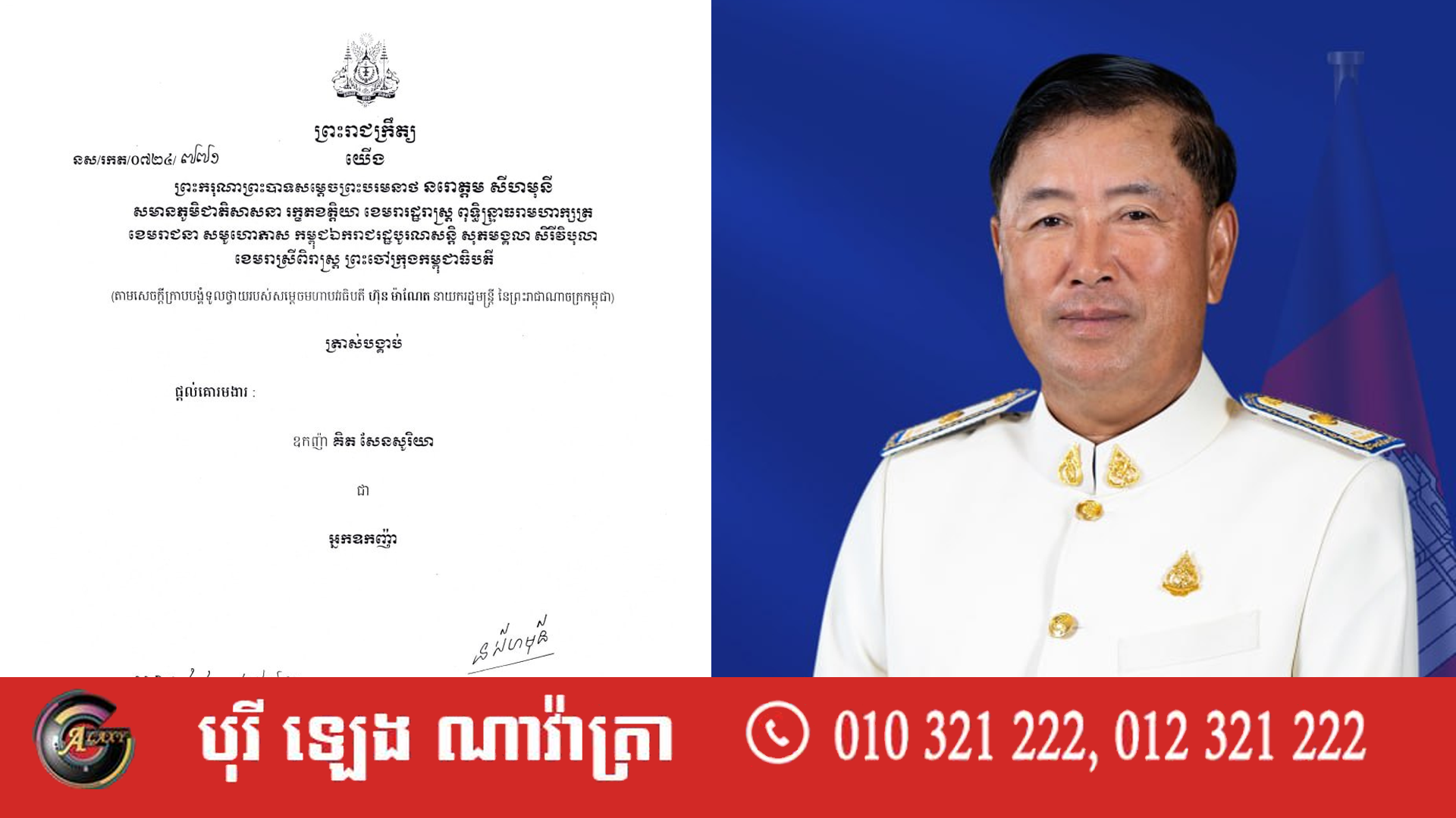 ព្រះមហាក្សត្រ ត្រាស់បង្គាប់ផ្តល់គោរមងារ «អ្នកឧកញ៉ា» ជូនឧកញ៉ា គិត សែនសូរិយា សមាជិកសមាគមឧកញ៉ាកម្ពុជា