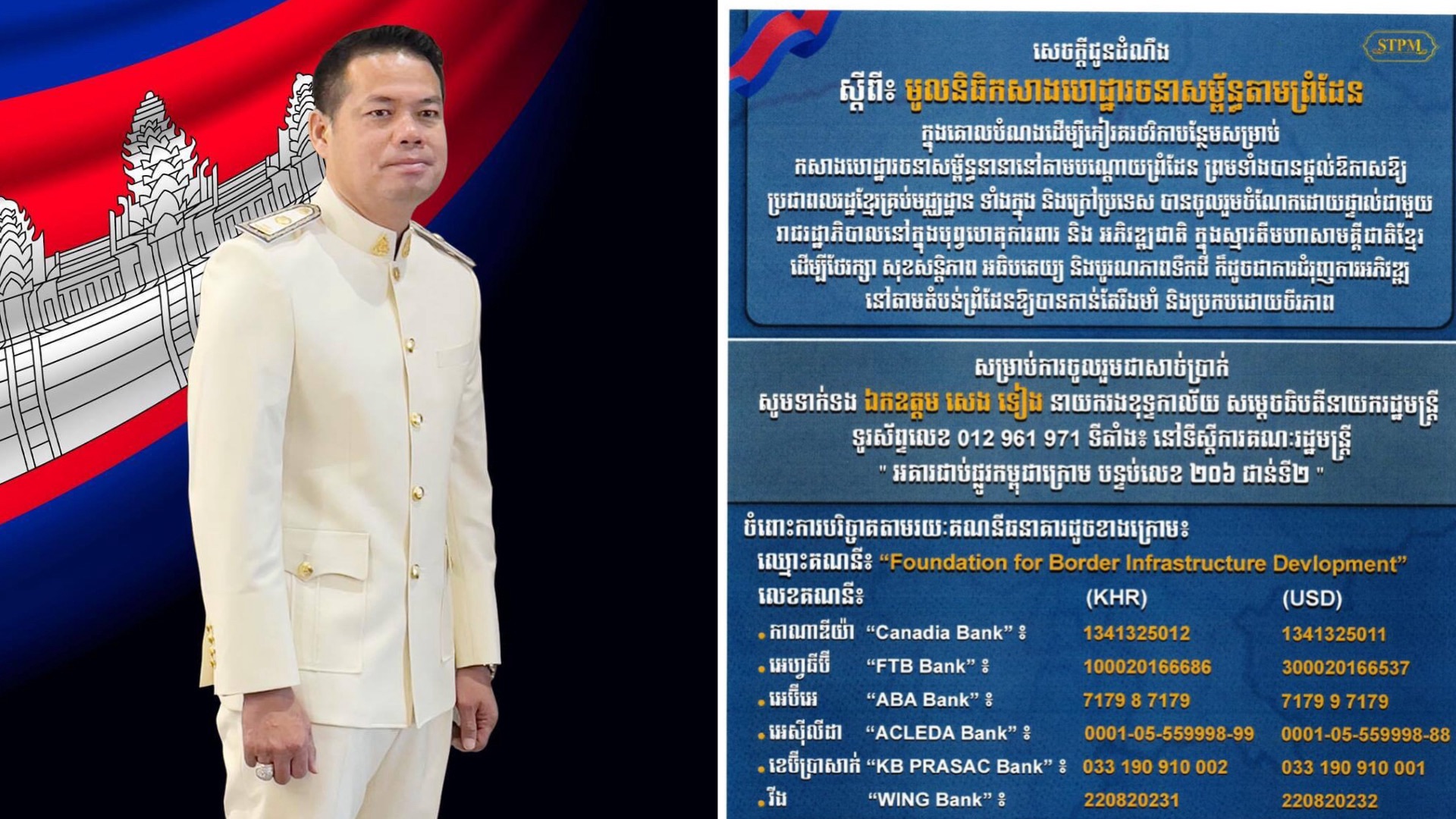 ការចូលរួមបរិច្ចាគថវិកាខាងលើនេះ តបតាមការប្រកាសរបស់ សម្តេចធិបតី ហ៊ុន ម៉ាណែត នាយករដ្ឋមន្រ្តីនៃកម្ពុជា សម្រេចបង្កើត «មូលនិធិកសាង ហេដ្ឋា រចនាសម្ព័ន្ធតាមព្រំដែន» ក្នុងគោលបំណងដើម្បី កៀរគរថវិកាបន្ថែម សម្រាប់កសាងហេដ្ឋារចនាសម្ព័ន្ធនានា នៅតាមបណ្តោយព្រំដែន ព្រមទាំងបានផ្តល់ឱកាស ឱ្យប្រជាពលរដ្ឋខ្មែរគ្រប់មជ្ឈដ្ឋាន ទាំងក្នុង និងក្រៅប្រទេស បានចូលរួមចំណែកដោយផ្ទាល់ជាមួយ រាជរដ្ឋាភិបាល នៅក្នុងបុព្វហេតុការពារ និងអភិវឌ្ឍជាតិ ក្នុងស្មារតី មហាសាមគ្គីជាតិខ្មែរ ដើម្បីថែរក្សា សុខសន្តិភាព អធិបតេយ្យ និងបូរណភាពទឹកដី ក៏ដូចជាការជំរុញការអភិវឌ្ឍ នៅតាមតំបន់ព្រំដែនឱ្យបានកាន់តែរឹងមាំ និងប្រកបដោយចីរភាព។
