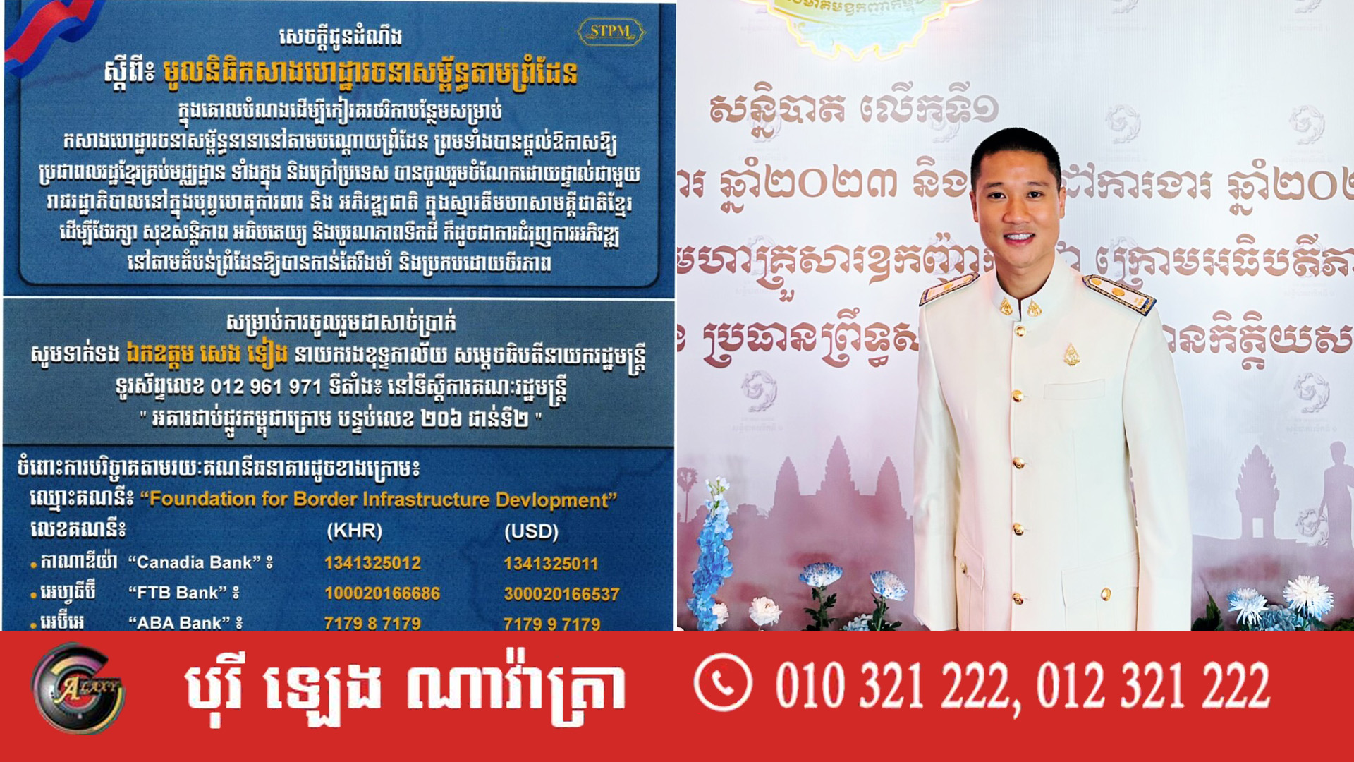 ការចូលរួមបរិច្ចាគថវិកាខាងលើ តបតាមការប្រកាសរបស់ សម្តេចធិបតី ហ៊ុន ម៉ាណែត នាយករដ្ឋមន្រ្តីនៃកម្ពុជា សម្រេចបង្កើត «មូលនិធិកសាងហេដ្ឋារចនាសម្ព័ន្ធតាមព្រំដែន» ក្នុងគោលបំណងដើម្បីកៀរគរថវិកាបន្ថែម សម្រាប់កសាងហេដ្ឋារចនាសម្ព័ន្ធនានា នៅតាមបណ្តោយព្រំដែន ព្រមទាំងបានផ្តល់ឱកាសឱ្យប្រជាពលរដ្ឋខ្មែរគ្រប់មជ្ឈដ្ឋាន ទាំងក្នុង និងក្រៅប្រទេស បានចូលរួមចំណែកដោយផ្ទាល់ជាមួយ រាជរដ្ឋាភិបាលនៅក្នុងបុព្វហេតុការពារ និងអភិវឌ្ឍជាតិ ក្នុងស្មារតីមហាសាមគ្គីជាតិខ្មែរ ដើម្បីថែរក្សា សុខសន្តិភាព អធិបតេយ្យ និងបូរណភាពទឹកដី ក៏ដូចជាការជំរុញការអភិវឌ្ឍ នៅតាមតំបន់ព្រំដែនឱ្យបានកាន់តែរឹងមាំ និងប្រកបដោយចីរភាព។
