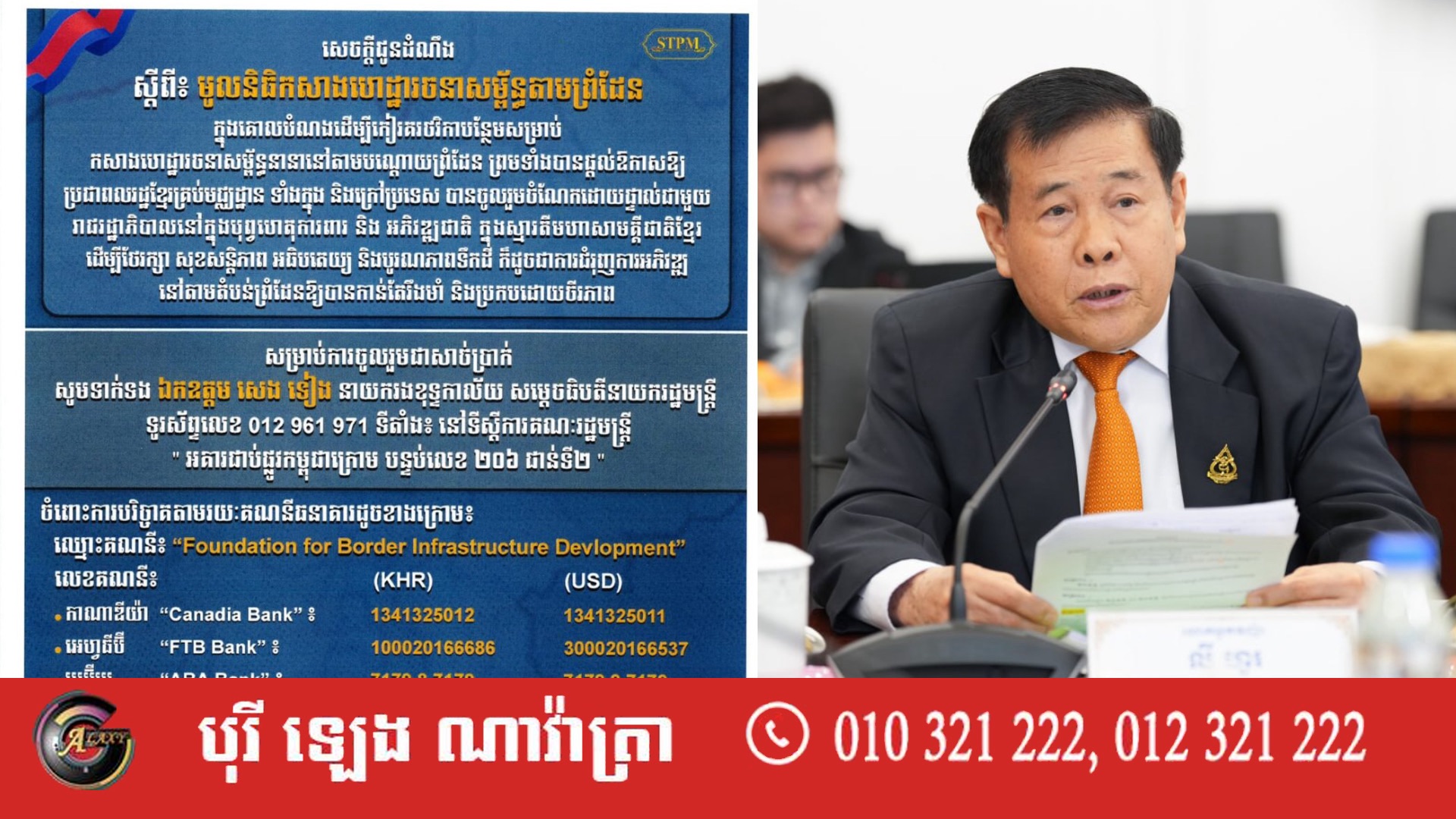ការចូលរួមបរិច្ចាគថវិកាខាងលើនេះ តបតាមការប្រកាសរបស់ សម្តេចធិបតី ហ៊ុន ម៉ាណែត នាយករដ្ឋមន្រ្តីនៃកម្ពុជា សម្រេចបង្កើត «មូលនិធិកសាង ហេដ្ឋា រចនាសម្ព័ន្ធតាមព្រំដែន» ក្នុងគោលបំណងដើម្បី កៀរគរថវិកាបន្ថែម សម្រាប់កសាងហេដ្ឋារចនាសម្ព័ន្ធនានា នៅតាមបណ្តោយព្រំដែន ព្រមទាំងបានផ្តល់ឱកាស ឱ្យប្រជាពលរដ្ឋខ្មែរគ្រប់មជ្ឈដ្ឋាន ទាំងក្នុង និងក្រៅប្រទេស បានចូលរួមចំណែកដោយផ្ទាល់ជាមួយ រាជរដ្ឋាភិបាល នៅក្នុងបុព្វហេតុការពារ និងអភិវឌ្ឍជាតិ ក្នុងស្មារតី មហាសាមគ្គីជាតិខ្មែរ ដើម្បីថែរក្សា សុខសន្តិភាព អធិបតេយ្យ និងបូរណភាពទឹកដី ក៏ដូចជាការជំរុញការអភិវឌ្ឍ នៅតាមតំបន់ព្រំដែនឱ្យបានកាន់តែរឹងមាំ និងប្រកបដោយចីរភាព។