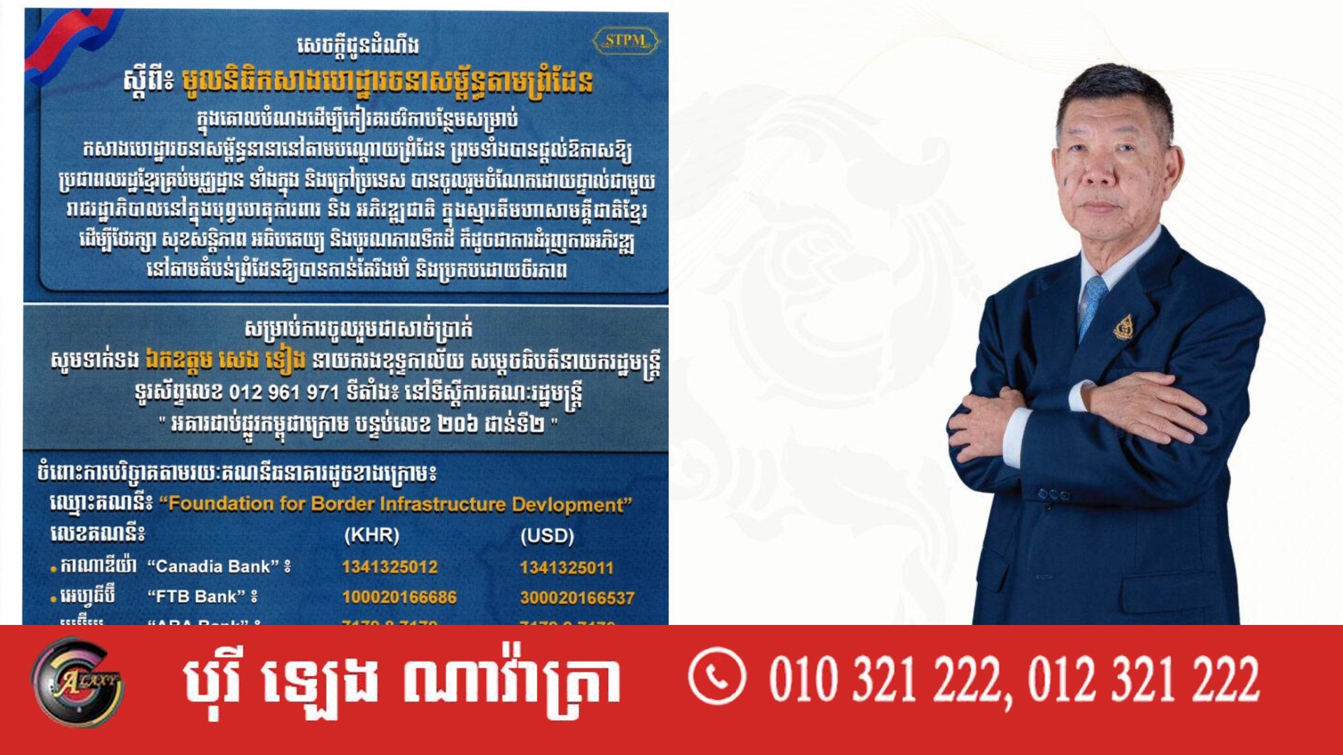 ការចូលរួមបរិច្ចាគថវិកាខាងលើនេះ តបតាមការប្រកាសរបស់ សម្តេចធិបតី ហ៊ុន ម៉ាណែត នាយករដ្ឋមន្រ្តីនៃកម្ពុជា សម្រេចបង្កើត «មូលនិធិកសាង ហេដ្ឋា រចនាសម្ព័ន្ធតាមព្រំដែន» ក្នុងគោលបំណងដើម្បី កៀរគរថវិកាបន្ថែម សម្រាប់កសាងហេដ្ឋារចនាសម្ព័ន្ធនានា នៅតាមបណ្តោយព្រំដែន ព្រមទាំងបានផ្តល់ឱកាស ឱ្យប្រជាពលរដ្ឋខ្មែរគ្រប់មជ្ឈដ្ឋាន ទាំងក្នុង និងក្រៅប្រទេស បានចូលរួមចំណែកដោយផ្ទាល់ជាមួយ រាជរដ្ឋាភិបាល នៅក្នុងបុព្វហេតុការពារ និងអភិវឌ្ឍជាតិ ក្នុងស្មារតី មហាសាមគ្គីជាតិខ្មែរ ដើម្បីថែរក្សា សុខសន្តិភាព អធិបតេយ្យ និងបូរណភាពទឹកដី ក៏ដូចជាការជំរុញការអភិវឌ្ឍ នៅតាមតំបន់ព្រំដែនឱ្យបានកាន់តែរឹងមាំ និងប្រកបដោយចីរភាព។