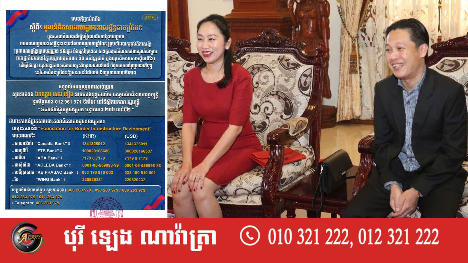 ការចូលរួមបរិច្ចាគថវិការបស់ ឧកញ៉ា តាំង គួងហាវ និងលោកជំទាវ អែម សុគៀង តបតាមការប្រកាសរបស់ សម្តេចធិបតី ហ៊ុន ម៉ាណែត នាយករដ្ឋមន្រ្តីនៃកម្ពុជា សម្រេចបង្កើត «មូលនិធិកសាងហេដ្ឋារចនាសម្ព័ន្ធតាមព្រំដែន» ក្នុងគោលបំណងដើម្បីកៀរគរថវិកាបន្ថែម សម្រាប់កសាងហេដ្ឋារចនាសម្ព័ន្ធនានា នៅតាមបណ្តោយព្រំដែន ព្រមទាំងបានផ្តល់ឱកាសឱ្យប្រជាពលរដ្ឋខ្មែរគ្រប់មជ្ឈដ្ឋាន ទាំងក្នុង និងក្រៅប្រទេស បានចូលរួមចំណែកដោយផ្ទាល់ជាមួយ រាជរដ្ឋាភិបាលនៅក្នុងបុព្វហេតុការពារ និងអភិវឌ្ឍជាតិ ក្នុងស្មារតីមហាសាមគ្គីជាតិខ្មែរ ដើម្បីថែរក្សា សុខសន្តិភាព អធិបតេយ្យ និងបូរណភាពទឹកដី ក៏ដូចជាការជំរុញការអភិវឌ្ឍ នៅតាមតំបន់ព្រំដែនឱ្យបានកាន់តែរឹងមាំ និងប្រកបដោយចីរភាព។