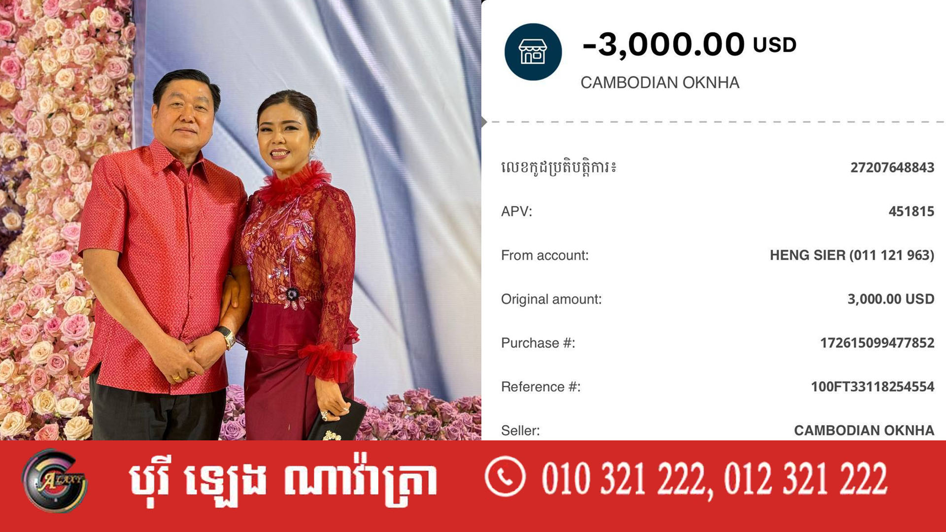 ប្រសិនបើពុកម៉ែបងប្អូន ចង់ចូលរួមតាមរយៈសាច់ប្រាក់ គឺចូលរួមតាម លោក សេង ទៀង នាយករងខុទ្ទកាល័យ សម្តេច ធិបតីនាយករដ្ឋមន្ត្រី ទូរស័ព្ទលេខ 012 961 971 ឬអាចបរិច្ចាគតាមរយៈគណនីធនាគារ ដែលផុសលើ ផេកសម្ដេចធិបតី៕