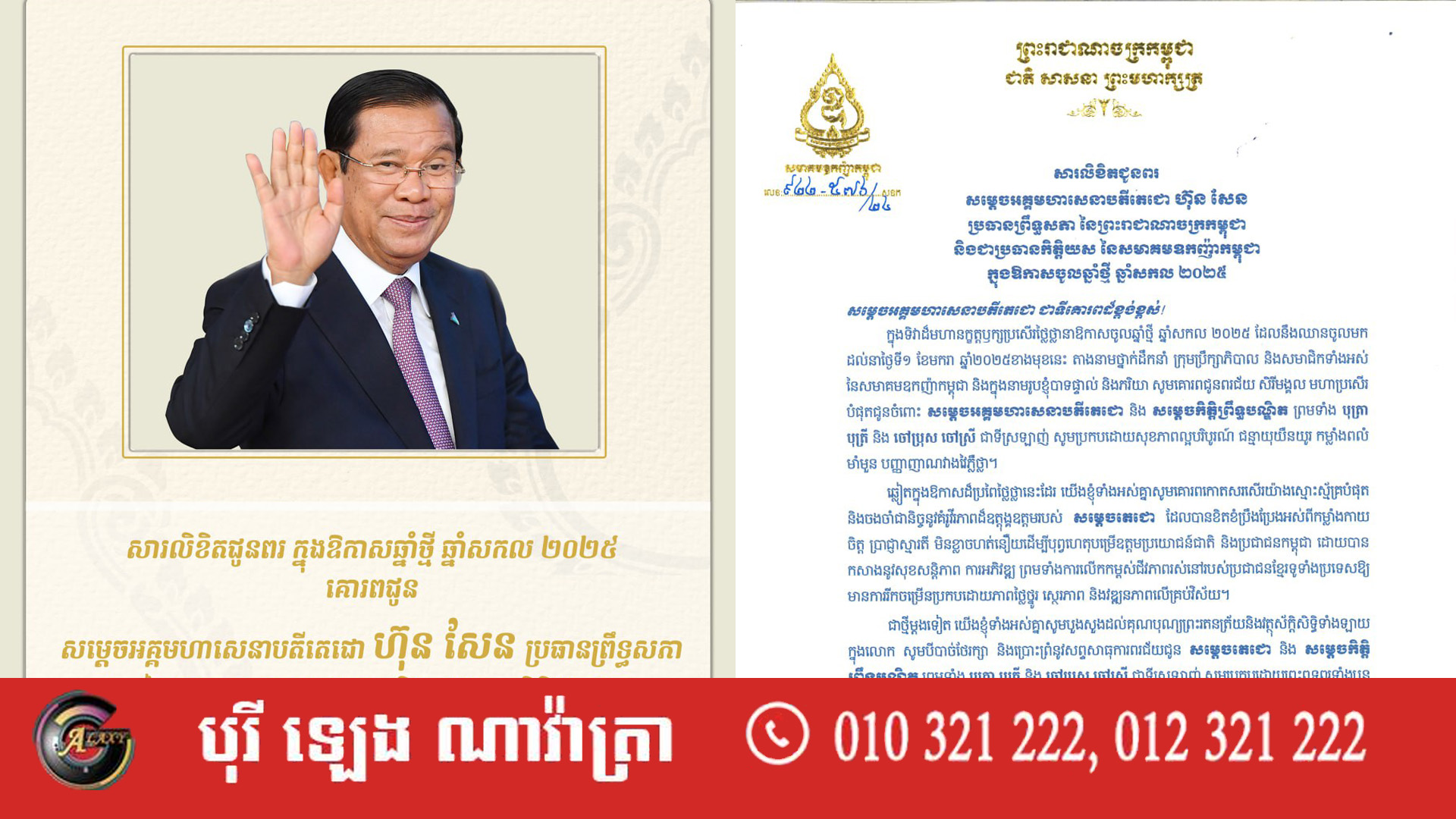 សមាគមឧកញ៉ាកម្ពុជា ផ្ញើសារលិខិតជូនពរ សម្តេចតេជោ ហ៊ុន សែន ក្នុងឱកាសឆ្នាំថ្មី ឆ្នាំសកល២០២៥