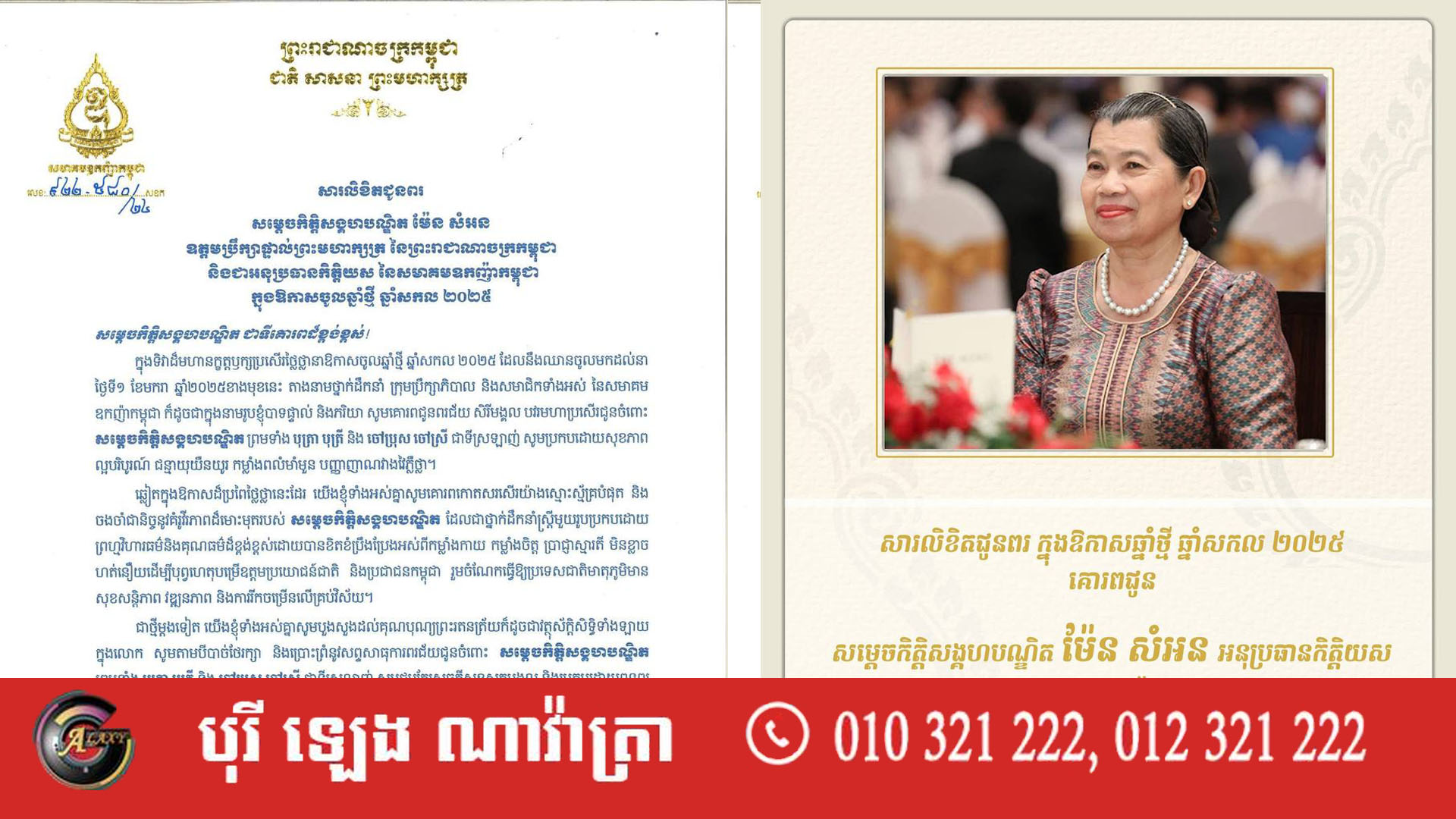 តាំងនាមថ្នាក់ដឹកនាំ ក្រុមប្រឹក្សាភិបាល និងសមាជិកទាំងអស់ នៃសមាគមឧកញ៉ាកម្ពុជា សូមគោរពជូនពរជ័យ សិរីមង្គល មហាប្រសើរបំផុតជូនចំពោះ សម្តេចកិត្តិសង្គហបណ្ឌិត ព្រមទាំងបុត្រាបុត្រី និងចៅប្រុស ចៅស្រី ជាទីស្រឡាញ់ សូមប្រកបដោយសុខភាពល្អបរិបូរណ៍ ជន្មាយុយឺនយូរ កម្លាំងពលំមាំមួន បញ្ញាញាណវាងវៃភ្លឺថ្នា។