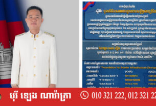 លោកអ្នកឧកញ៉ា លី យ៉ុងផាត់ ប្រធានសមាគមឧកញ៉ាកម្ពុជា ព្រមទាំងអនុប្រធាន សមាជិកក្រុមប្រឹក្សាភិបាល និងសមាជិកទាំងអស់ នៃសមាគមឧកញ៉ាកម្ពុជា បានផ្ញើសារលិខិតរំលែកមរណទុក្ខ ជូនចំពោះក្រុមគ្រួសារសព ឯកឧត្តម អ្នកឧកញ៉ា ឧត្តមមេត្រីវិសិដ្ឋ ហ៊ុន សាន រដ្ឋលេខាធិការក្រសួងសាធារណការ និងដឹកជញ្ជូនដែលបានទទួលអនិច្ចកម្មកាលពីព្រឹកថ្ងៃសុក្រ ១៥រោច ខែផល្គុន ឆ្នាំរោង ឆស័ក ព.ស.២៥៦៨ ត្រូវនឹងថ្ងៃទី២៨ ខែមីនា ឆ្នាំ២០២៥នេះ នាវេលាម៉ោង ២:២៧នាទី ក្នុងជន្មាយុ ៧៨ឆ្នាំ ដោយរោគាពាធ។