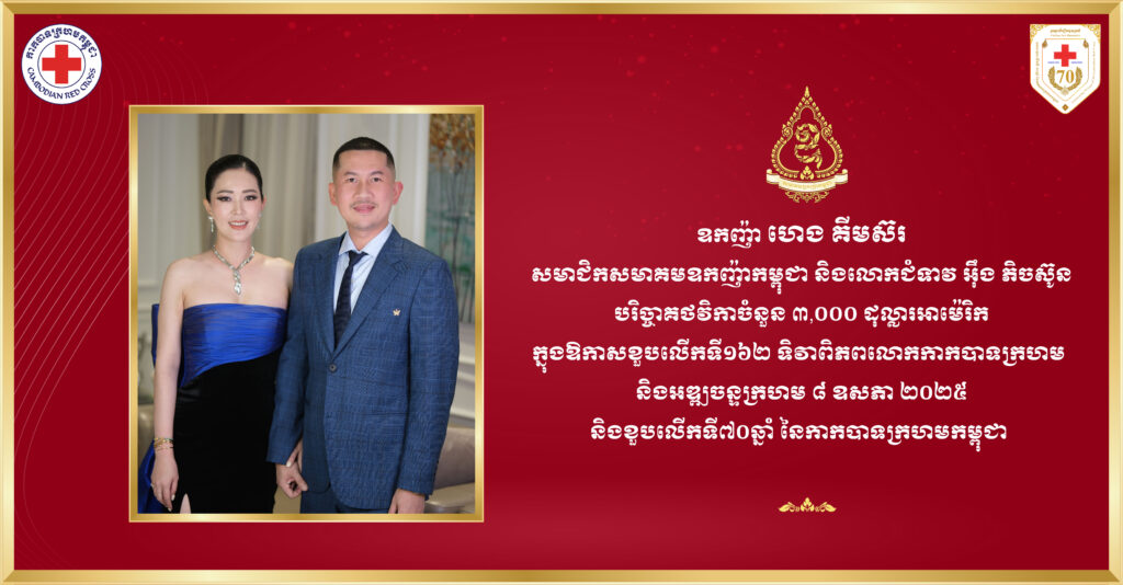 ឧកញ៉ា ហេង គីមស៊រ និងលោកជំទាវ បរិច្ចាគថវិកាចំនួន ៣ពាន់ដុល្លារអាម៉េរិក ក្នុងឱកាសខួបទី១៦២ ទិវាពិភពលោកកាកបាទក្រហម និងអឌ្ឍចន្ទក្រហម ៨ ឧសភា ឆ្នាំ២០២៥