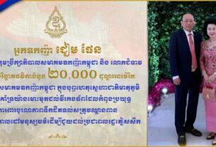 អ្នកឧកញ៉ា ជឹង សុគន្ធាវី សមាជិកសមាគមឧកញ៉ាកម្ពុជា និងស្វាមី បរិច្ចាគថវិកាចំនួន ៥,០០០ ដុល្លារអាម៉េរិក ក្នុងឱកាសខួបលើកទី១៦២ ទិវាពិភពលោកកាកបាទក្រហម និងអឌ្ឍចន្ទក្រហម ៨ ឧសភា ឆ្នាំ២០២៥ និងខួបលើកទី៧០ឆ្នាំ នៃកាកបាទក្រហមកម្ពុជា។