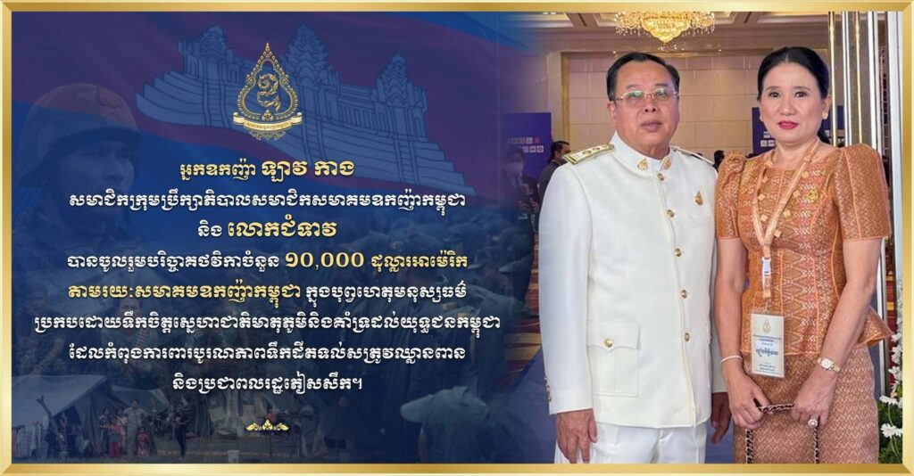 អ្នកឧកញ៉ា ឡាវ កាង ចូលរួមឧបត្ថម្ភថវិកា ១០,០០០ ដុល្លារអាម៉េរិក ដល់កងទ័ពជួរមុខ ដែលកំពុងឈរជើងការពារបូរណភាពទឹកដីកម្ពុជា
