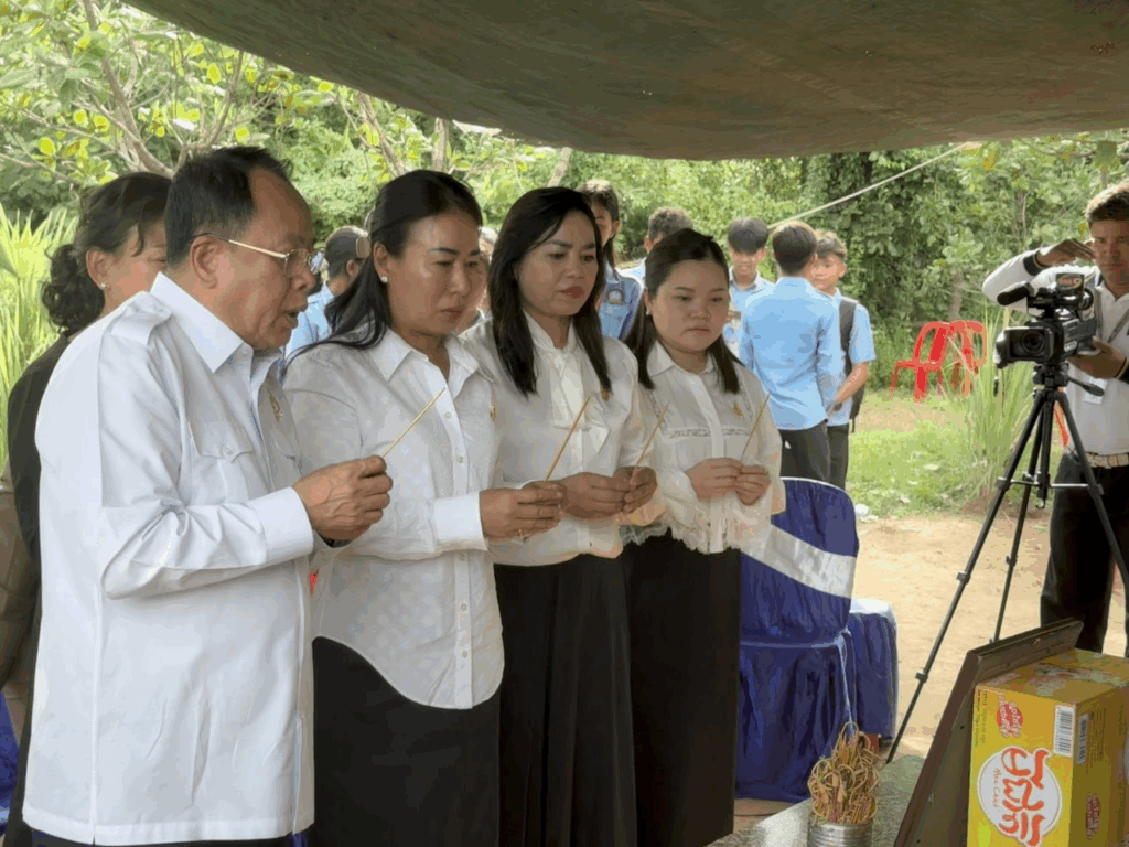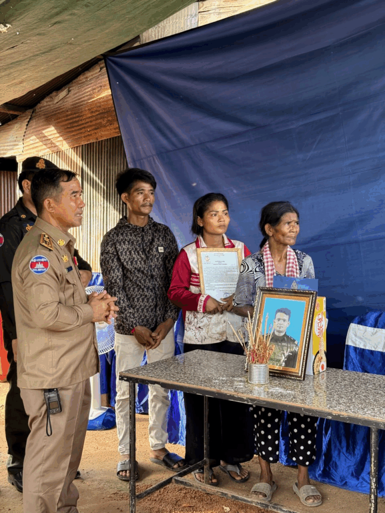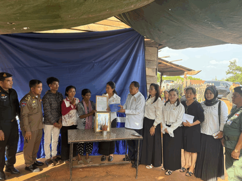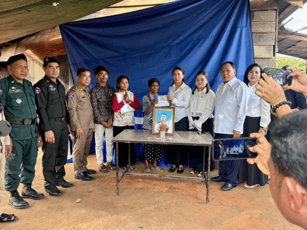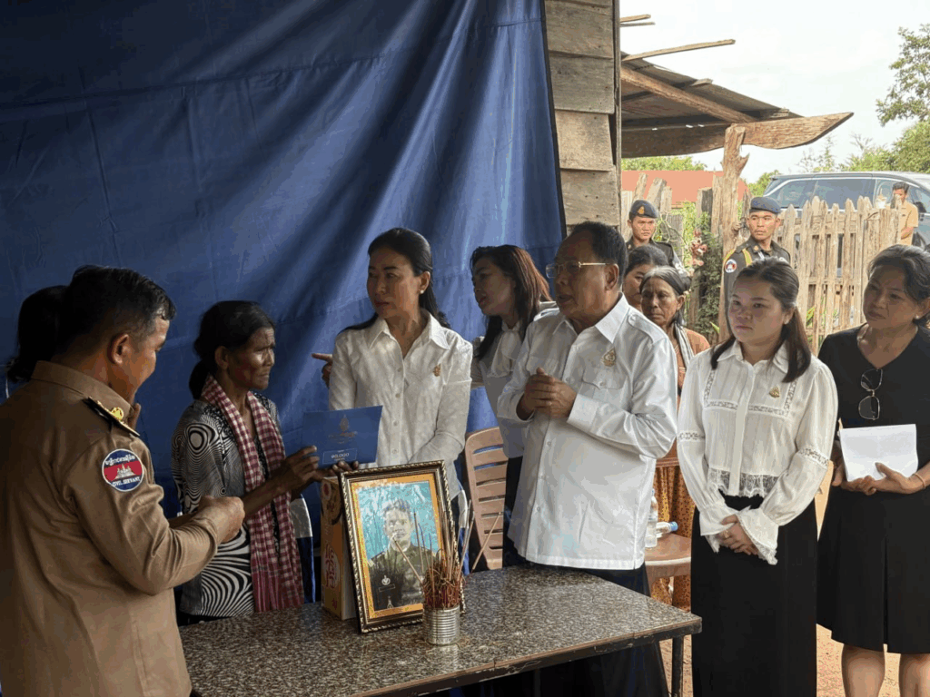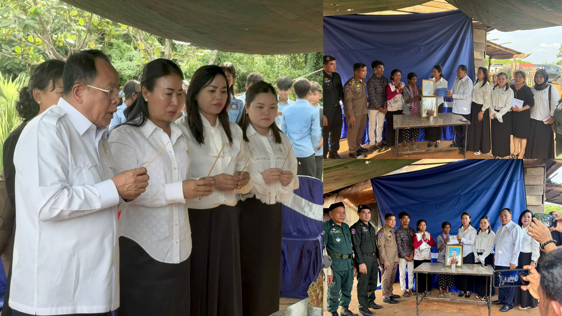 ក្នុងវេលាដ៏ក្រៀមក្រំនេះដែរ អ្នកឧកញ៉ា អ៊ាន អេឡែន បានពាំនាំនូវការចូលរួមរំលែកទុក្ខពីលោកអ្នកឧកញ៉ាប្រធាន ក៏ដូចជាលិខិតរំលែកមរណទុក្ខពីសមាគមឧកញ៉ាកម្ពុជា ជូនក្រុមគ្រួសារ នៃសពនាគេហដ្ឋានដែលស្ថិតនៅភូមិភ្នំដែក ឃុំរមណីយ ស្រុករវៀង ខេត្តព្រះវិហារ។