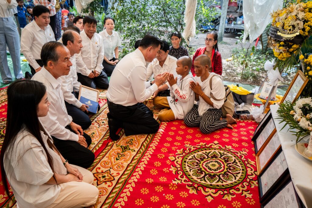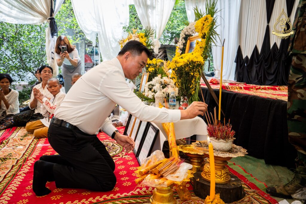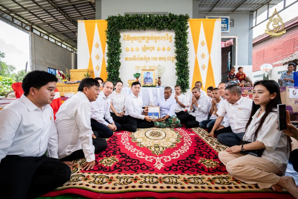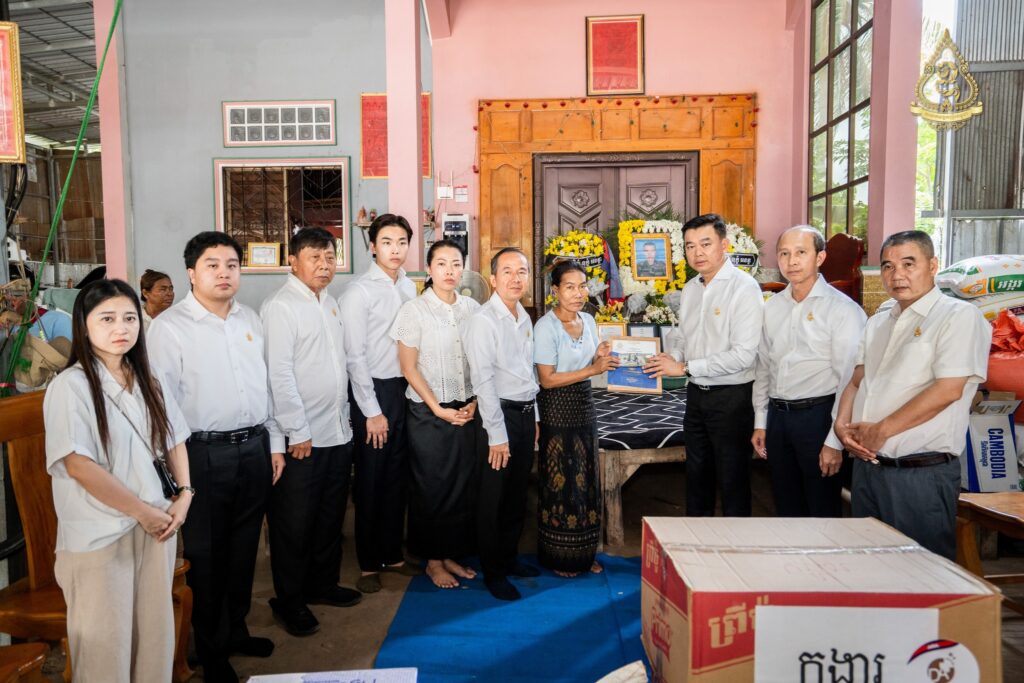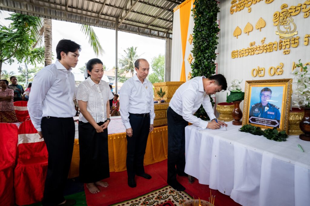ក្នុងវេលាដ៏ក្រៀមក្រំនេះដែរ លោកអ្នកឧកញ៉ា លាង ឃុន បានពាំនាំនូវសារចូលរួមរំលែកទុក្ខពី លោកអ្នកឧកញ៉ា ប្រធាន ក៏ដូចជាលិខិតរំលែកមរណទុក្ខ និងថវិកាមួយចំនួនពីសមាគមឧកញ៉ាកម្ពុជា ព្រមទាំងគ្រឿងឧបភោគបរិភោគមួយចំនួនទៀតជូនក្រុមគ្រួសារ នៃសពវីរជនទាំង ៤រូបផងដែរ។