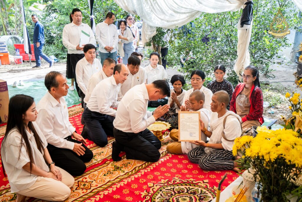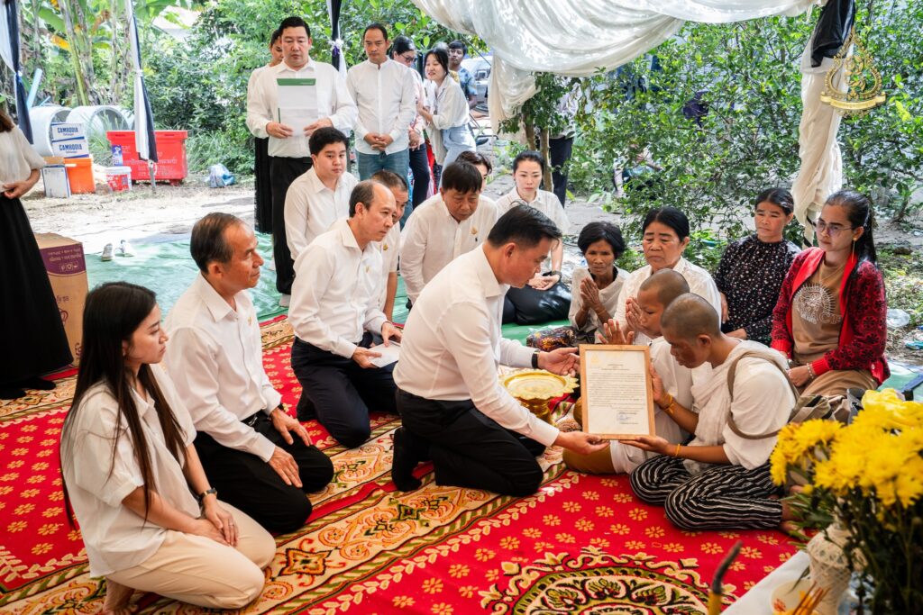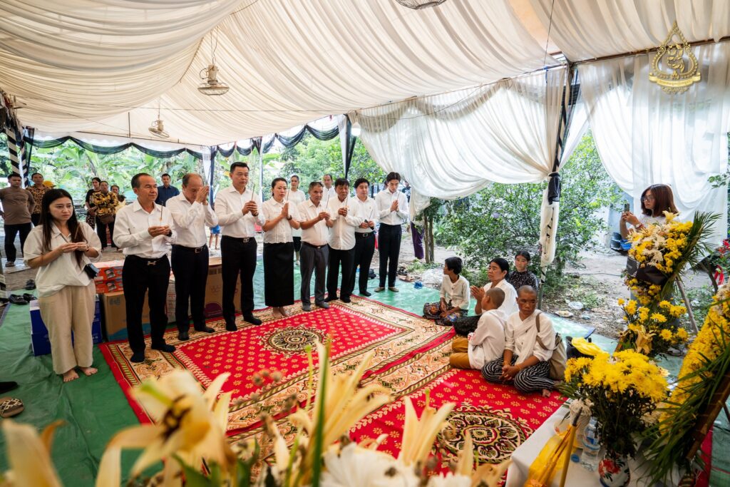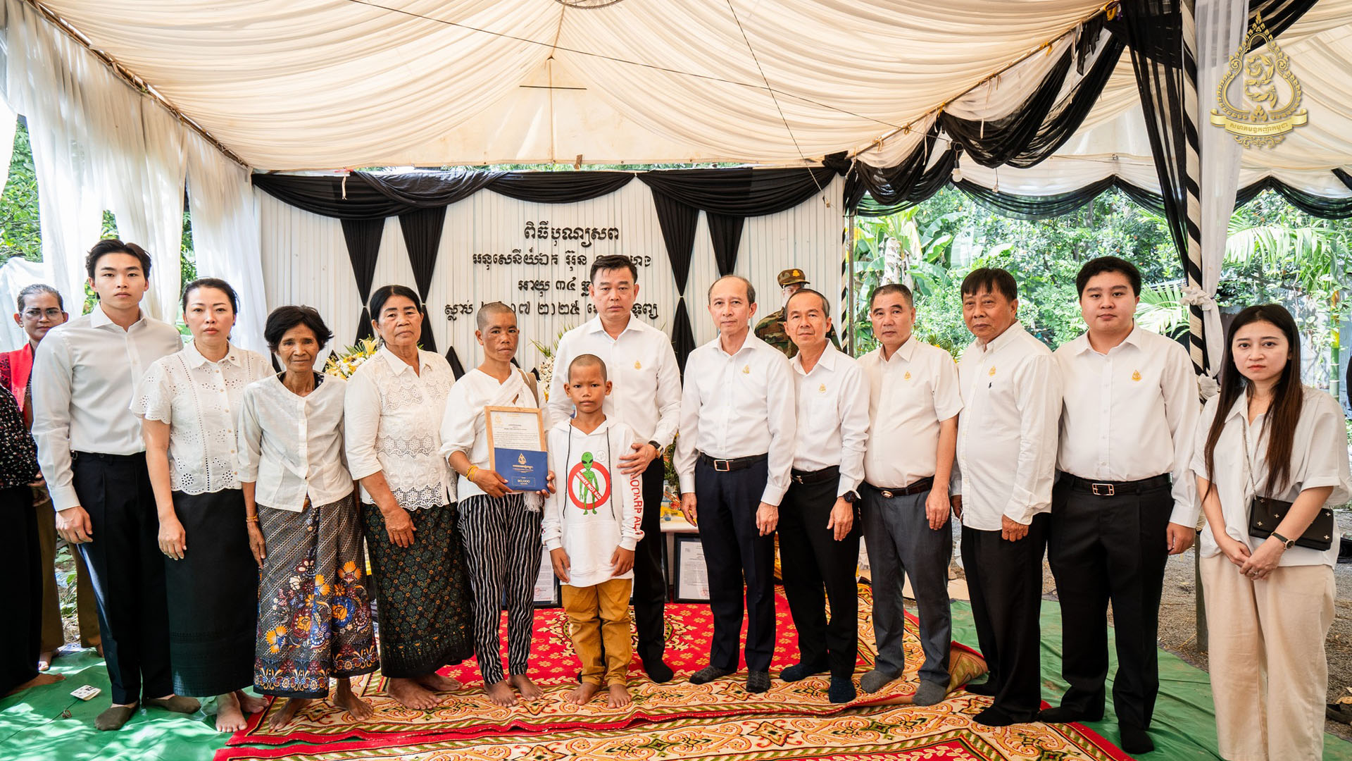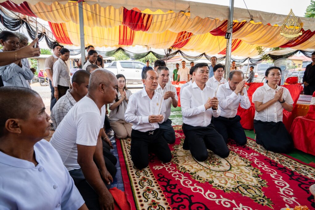 ក្នុងវេលាដ៏ក្រៀមក្រំនេះដែរ លោកអ្នកឧកញ៉ា លាង ឃុន បានពាំនាំនូវសារចូលរួមរំលែកទុក្ខពី លោកអ្នកឧកញ៉ា ប្រធាន ក៏ដូចជាលិខិតរំលែកមរណទុក្ខ និងថវិកាមួយចំនួនពីសមាគមឧកញ៉ាកម្ពុជា ព្រមទាំងគ្រឿងឧបភោគបរិភោគមួយចំនួនទៀតជូនក្រុមគ្រួសារ នៃសពវីរជនទាំង ៤រូបផងដែរ។
