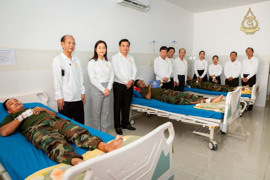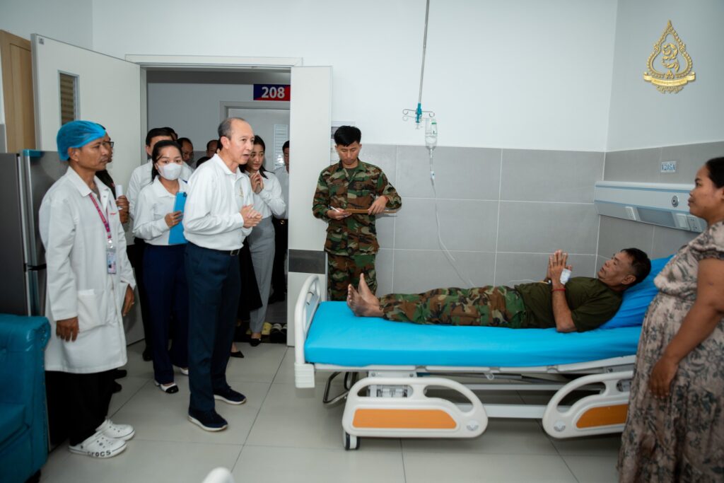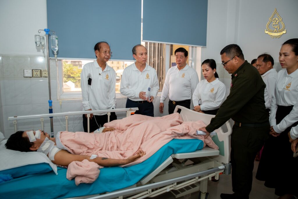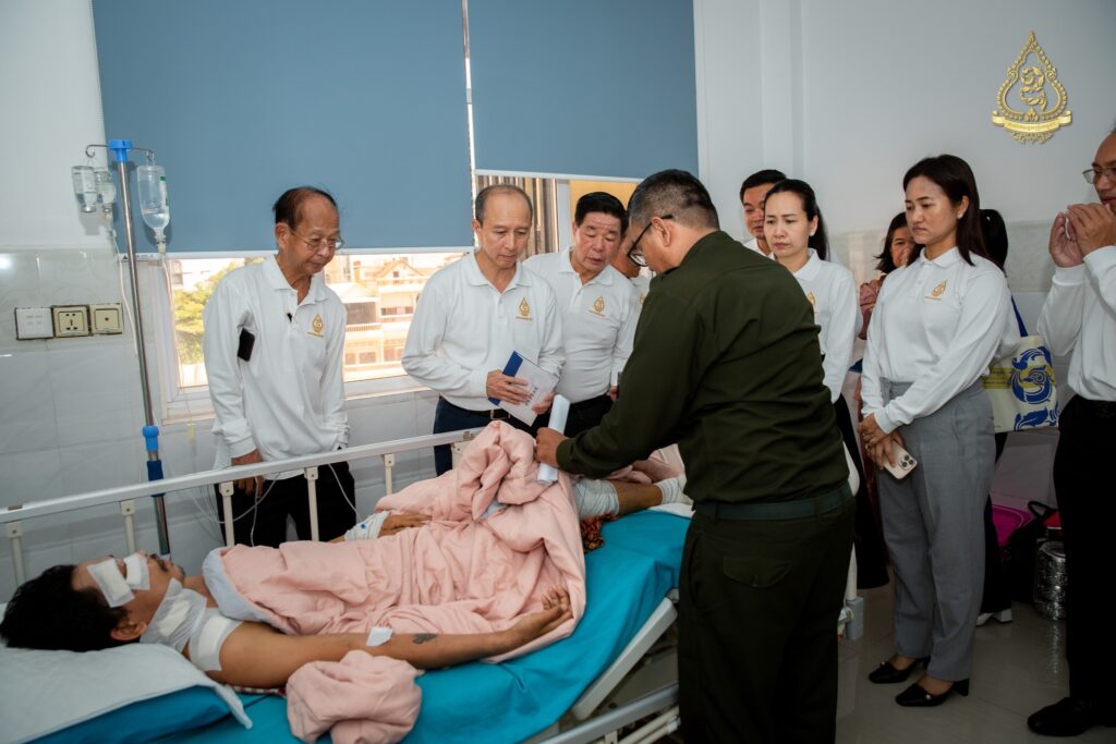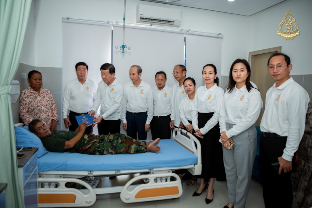 នាព្រឹកថ្ងៃសុក្រ ទី៨ ខែសីហា ឆ្នាំ២០២៥នេះ អ្នកឧកញ៉ា ហ៊ុន ឡាក់ អគ្គលេខាធិការ និងជាតំណាងលោកអ្នកឧកញ៉ា លី យ៉ុងផាត់ ប្រធានសមាគមឧកញ៉ាកម្ពុជា បានដឹកនាំគណៈប្រតិភូសមាគមឧកញ៉ាកម្ពុជា ដែលរួមមានវត្តមាន អ្នកឧកញ៉ា និងឧកញ៉ា ជាច្រើនរូបចុះសួរសុខទុក្ខវីរកងទ័ពដែលរងរបួសនៅសមរភូមិ និងកំពុងសម្រាកព្យាបាលនៅមន្ទីរពេទ្យព្រះកេតុមាលា ក្រោមការយកចិត្តទុកដាក់ជាពិសេសពីថ្នាក់ដឹកនាំមន្ទីរពេទ្យ សាស្ត្រាចារ្យ និងវេជ្ជបណ្ឌិតឯកទេសគ្រប់ជំនាញ។