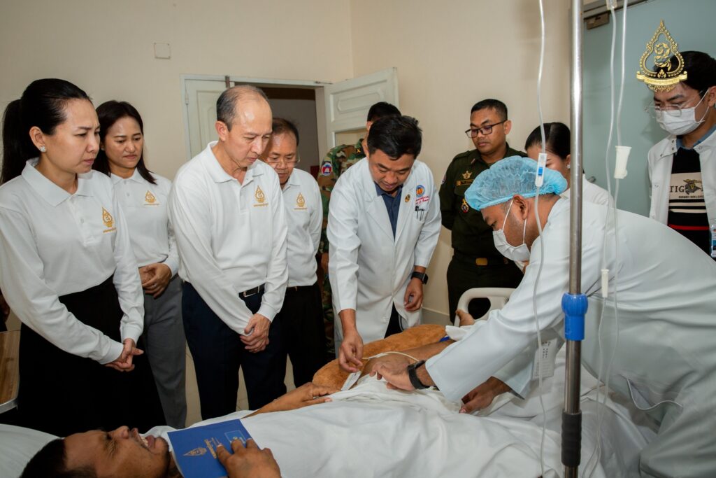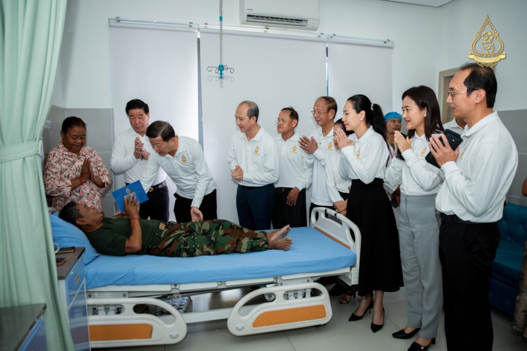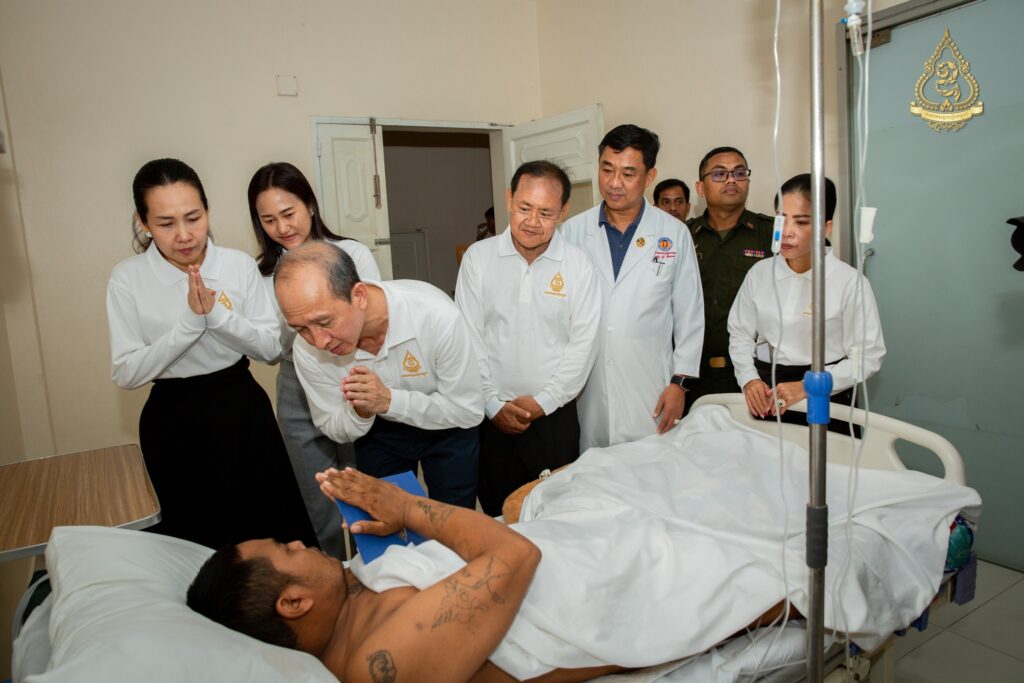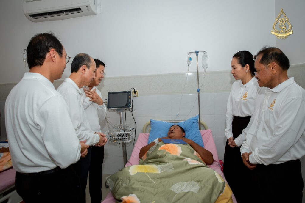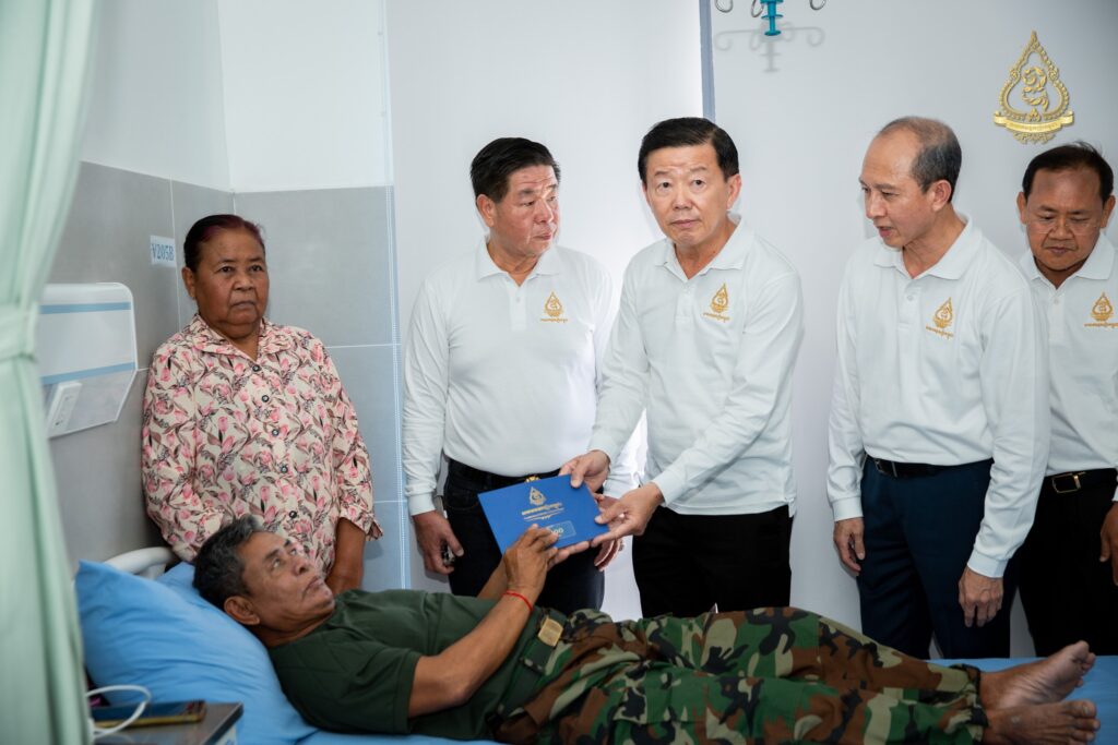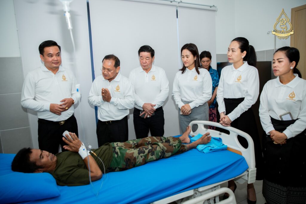នាព្រឹកថ្ងៃសុក្រ ទី៨ ខែសីហា ឆ្នាំ២០២៥នេះ អ្នកឧកញ៉ា ហ៊ុន ឡាក់ អគ្គលេខាធិការ និងជាតំណាងលោកអ្នកឧកញ៉ា លី យ៉ុងផាត់ ប្រធានសមាគមឧកញ៉ាកម្ពុជា បានដឹកនាំគណៈប្រតិភូសមាគមឧកញ៉ាកម្ពុជា ដែលរួមមានវត្តមាន អ្នកឧកញ៉ា និងឧកញ៉ា ជាច្រើនរូបចុះសួរសុខទុក្ខវីរកងទ័ពដែលរងរបួសនៅសមរភូមិ និងកំពុងសម្រាកព្យាបាលនៅមន្ទីរពេទ្យព្រះកេតុមាលា ក្រោមការយកចិត្តទុកដាក់ជាពិសេសពីថ្នាក់ដឹកនាំមន្ទីរពេទ្យ សាស្ត្រាចារ្យ និងវេជ្ជបណ្ឌិតឯកទេសគ្រប់ជំនាញ។