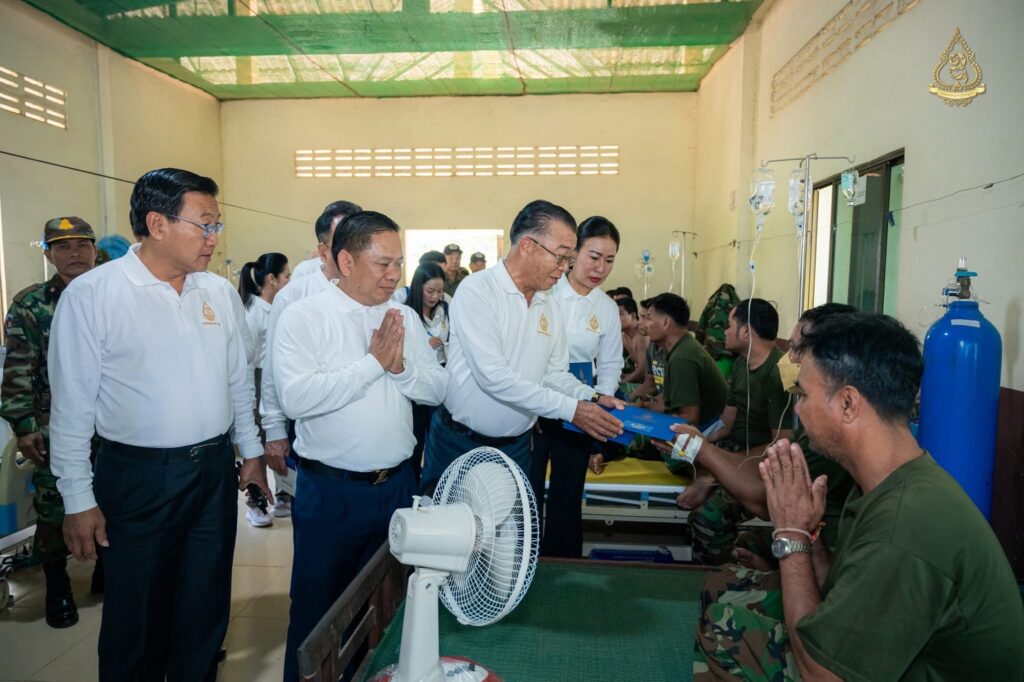 នាថ្ងៃអាទិត្យ ទី១០ ខែសីហា ឆ្នាំ២០២៥នេះ អ្នកឧកញ៉ា ផែ ហុកឈួន អនុប្រធាន និងជាតំណាងលោកអ្នកឧកញ៉ា លី យ៉ុងផាត់ ប្រធានសមាគមឧកញ៉ាកម្ពុជា បានដឹកនាំគណៈប្រតិភូសមាគមឧកញ៉ាកម្ពុជា ដែលរួមមានវត្តមាន អ្នកឧកញ៉ា និងឧកញ៉ា ជាច្រើនរូបចុះសួរសុខទុក្ខវីរកងទ័ពដែលរងរបួសនៅសមរភូមិ និងកំពុងសម្រាកព្យាបាលនៅមន្ទីរពេទ្យកងពលថ្មើជើងលេខ៤២ ដែលស្ថិតក្នុងខេត្តឧត្តរមានជ័យ។
