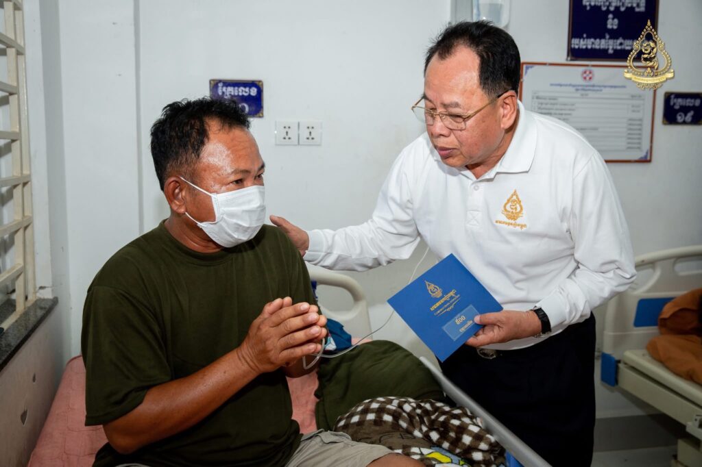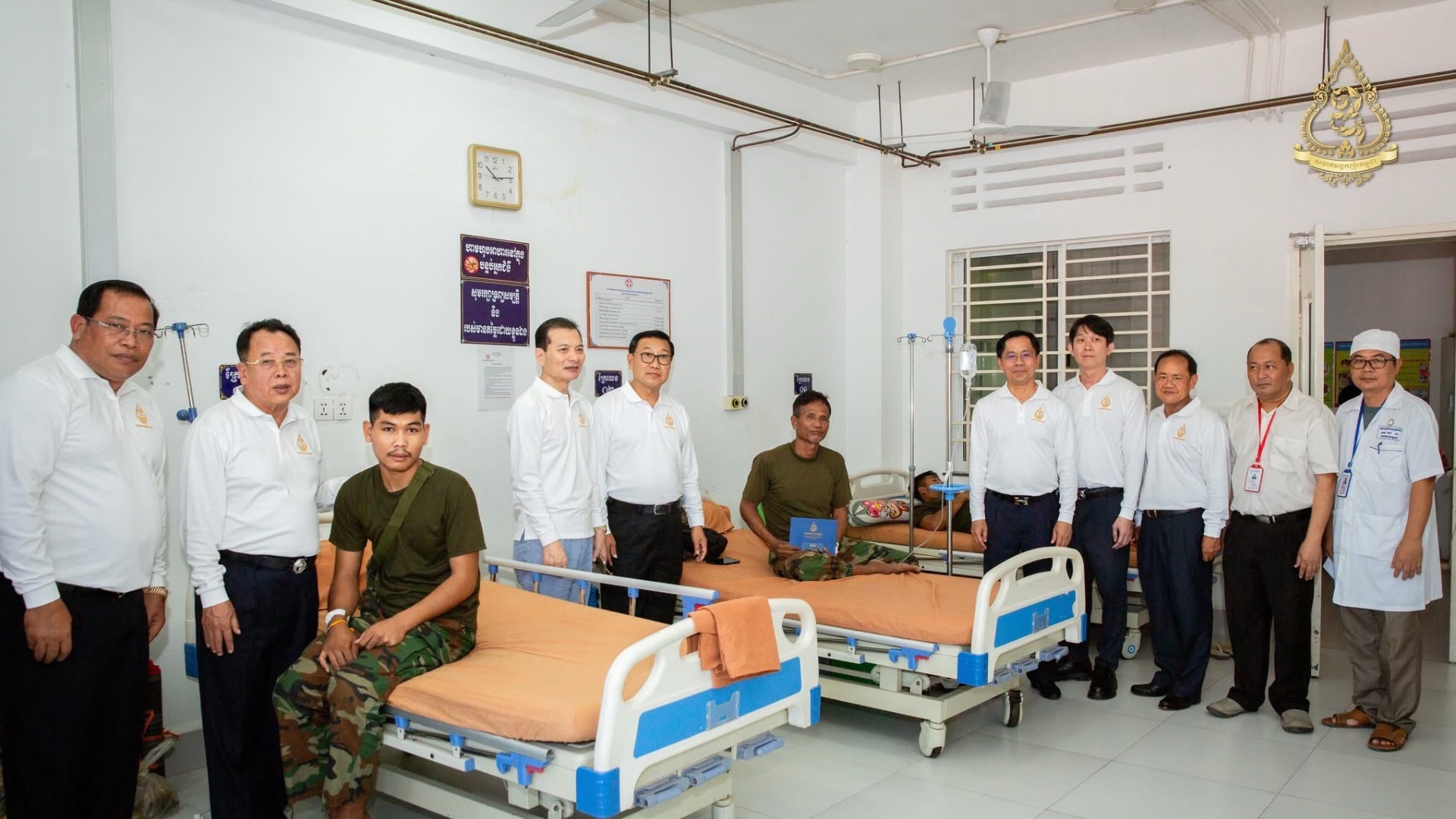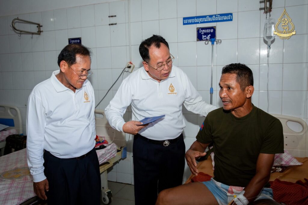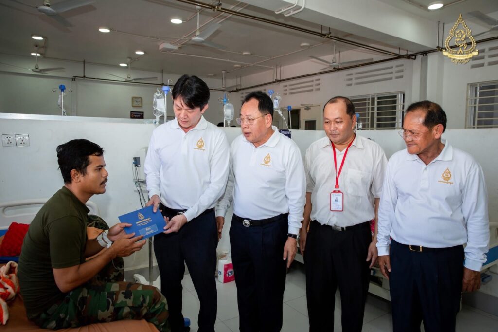 អ្នកឧកញ៉ា ឡាវ កាង ដឹកនាំគណៈប្រតិភូសមាគមឧកញ៉ាកម្ពុជា ចុះសួរសុខទុក្ខ និងនាំយកអំណោយជាថវិកាជូនវីរកងទ័ពដែលបានរបួសក្នុងសមរភូមិ និងកំពុងសម្រាកព្យាបាលនៅមន្ទីរពេទ្យបង្អែកខេត្តឧត្តរមានជ័យ