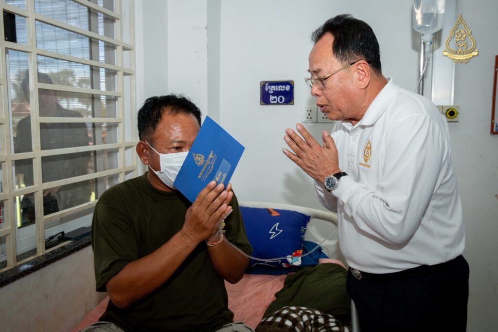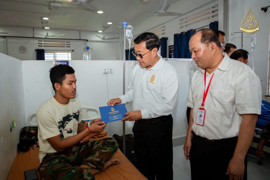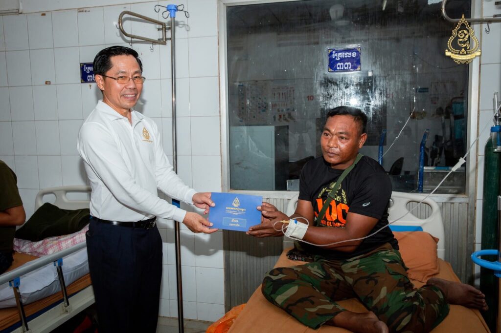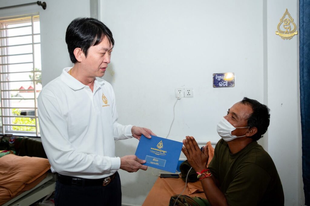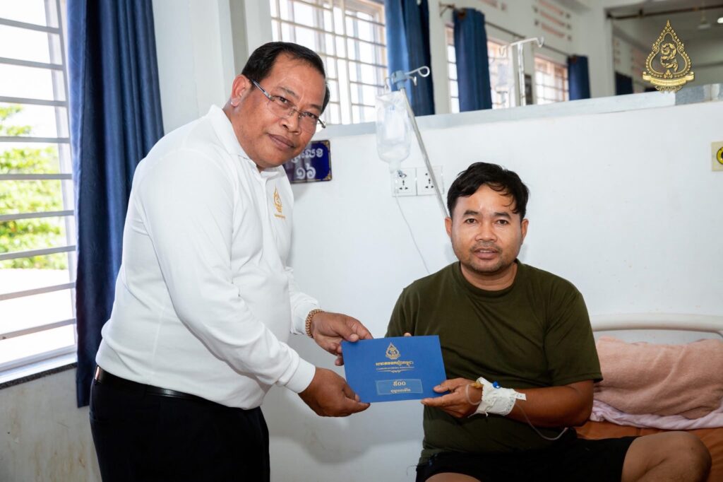 អ្នកឧកញ៉ា ឡាវ កាង ដឹកនាំគណៈប្រតិភូសមាគមឧកញ៉ាកម្ពុជា ចុះសួរសុខទុក្ខ និងនាំយកអំណោយជាថវិកាជូនវីរកងទ័ពដែលបានរបួសក្នុងសមរភូមិ និងកំពុងសម្រាកព្យាបាលនៅមន្ទីរពេទ្យបង្អែកខេត្តឧត្តរមានជ័យ
