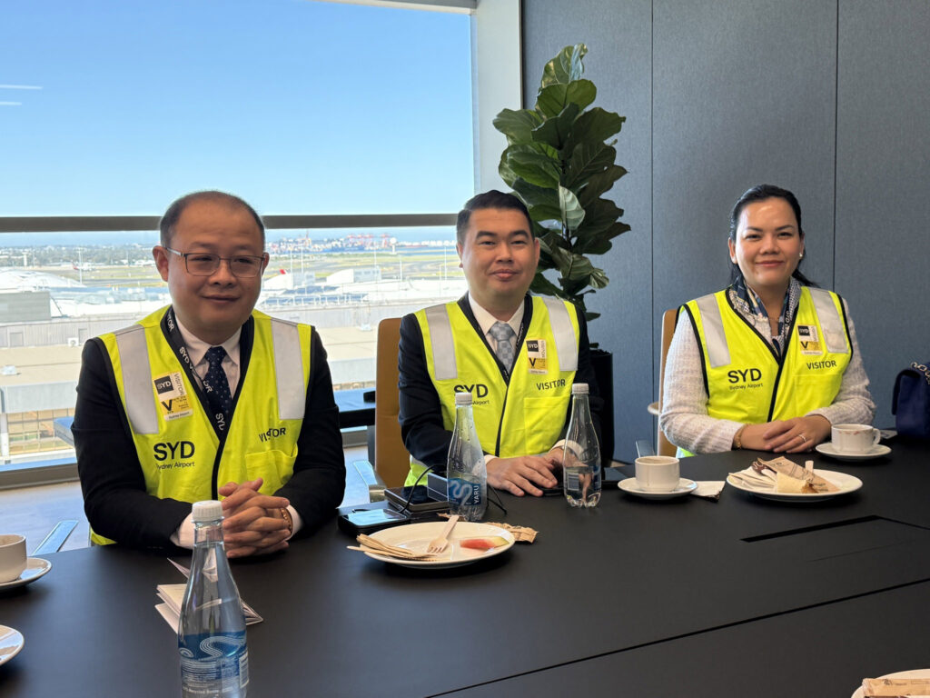 ៣. ដំណើរទស្សនកិច្ចអាកាសយានដ្ឋានអន្តរជាតិស៊ីដនី (SYD) របស់អូស្ត្រាលី ដែលវិនិយោគដោយក្រុមហ៊ុន Global Infrastructure Partners (GIP) ដើម្បីស្វែងយល់ពីការអភិវឌ្ឍ និងគ្រប់គ្រងអាកាសយានដ្ឋានអន្តរជាតិស៊ីដនី (SYD) ដែលជាគម្រោងវិនិយោគមួយរបស់ក្រុមហ៊ុន GIP និងមានឯកទេសក្នុងការវិនិយោគ កាន់កាប់ និងប្រតិបត្តិការទ្រព្យសកម្ម ហេដ្ឋារចនាសម្ព័ន្ធដ៏ធំ និងប្រទាក់ក្រឡានៅក្នុងវិស័យផ្សេងៗ រួមមាន ថាមពលកកើតឡើងវិញ, ការផលិត និងចែកចាយថាមពល, ហេដ្ឋារចនាសម្ព័ន្ធឧស្ម័ន និងប្រេង, វិស័យដឹកជញ្ជូនដូចជាអាកាសយានដ្ឋាន, កំពង់ផែ, ផ្លូវដែក, និងហេដ្ឋារចនាសម្ព័ន្ធដឹកជញ្ជូនផ្សេងទៀត, ហេដ្ឋារចនាសម្ព័ន្ធឌីជីថល រួមមានមជ្ឈមណ្ឌលទិន្នន័យ, បណ្តាញខ្សែកាប Fiber Optic និងបង្គោលអង់តែនទូរសព្ទ និង ការគ្រប់គ្រងកាកសំណល់ និងហេដ្ឋារចនាសម្ព័ន្ធទឹកជាដើម។