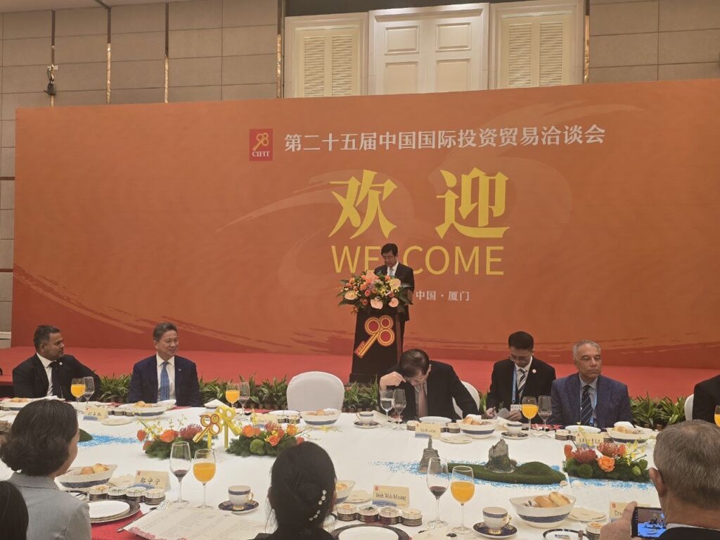 ខេត្តហ្វូជៀន, សាធារណរដ្ឋប្រជាមានិតចិន៖ នាល្ងាចថ្ងៃអាទិត្យ ទី៧ ខែកញ្ញា ឆ្នាំ២០២៥ អ្នកឧកញ៉ា គួន ធីតា ប្រធានអនុគណៈកម្មការទំនាក់ទំនង និងធុរកិច្ច បានដឹកនាំគណៈប្រតិភូសមាគមឧកញ៉ាកម្ពុជា អមដំណើរឯកឧត្តម ស៊ុន ចាន់ថុល ឧបនាយករដ្ឋមន្ត្រី អនុប្រធានទី១ ក្រុមប្រឹក្សាអភិវឌ្ឍន៍កម្ពុជា ក្នុងឱកាសជំនួបសម្ដែងការគួរសម និងពិភាក្សាការងារជាមួយឯកឧត្តម ចាវ ឡុង (Zhao Long) អភិបាលខេត្តហ្វូជៀន នៃសាធារណរដ្ឋប្រជាមានិតចិន។