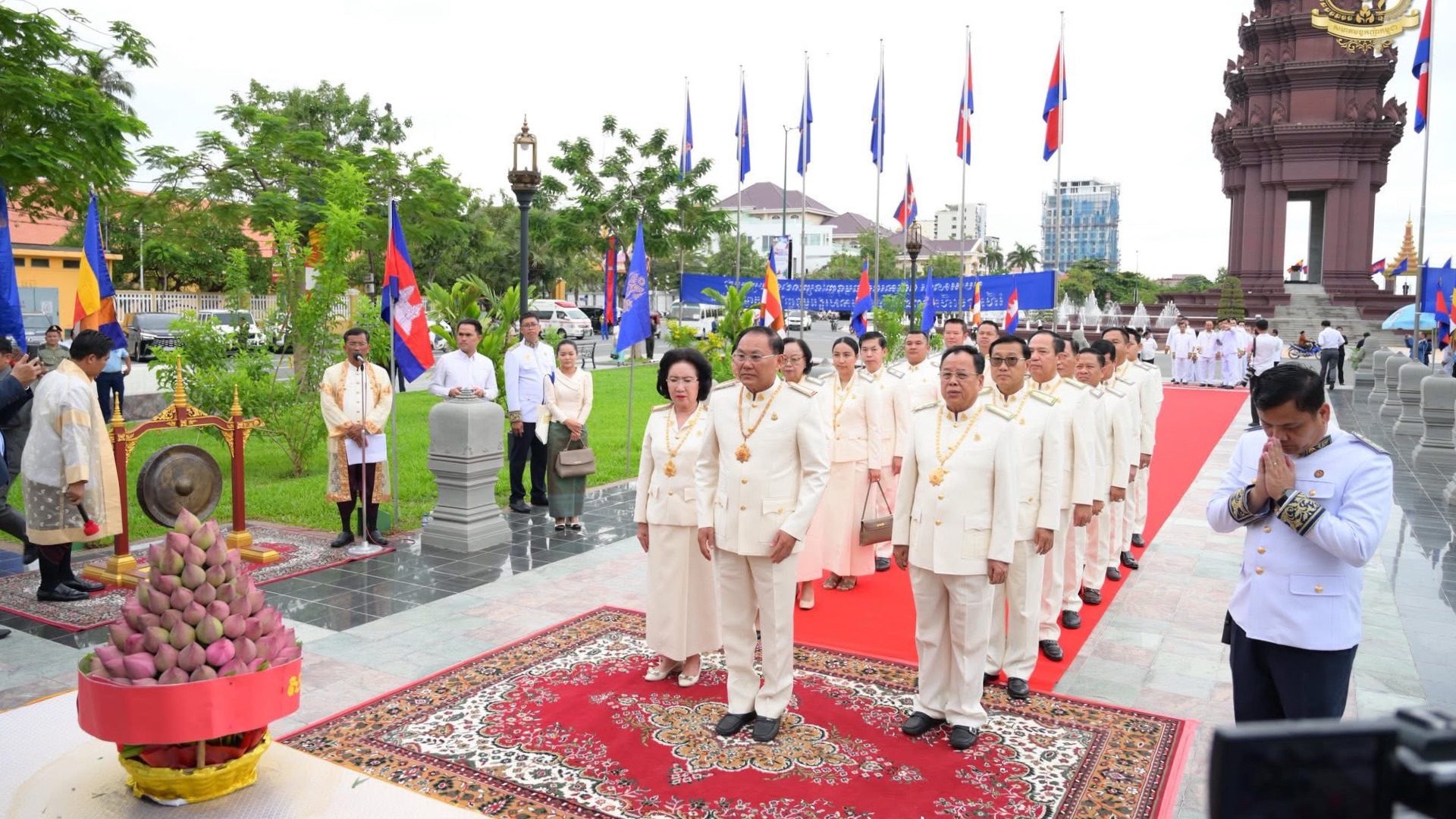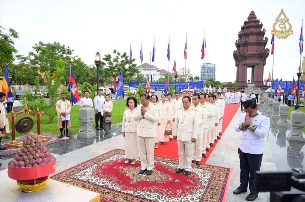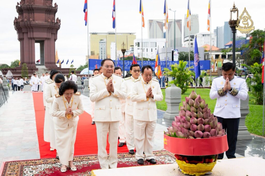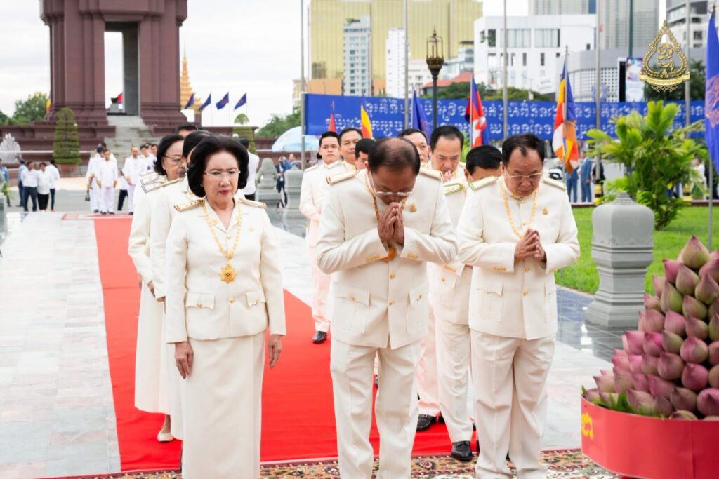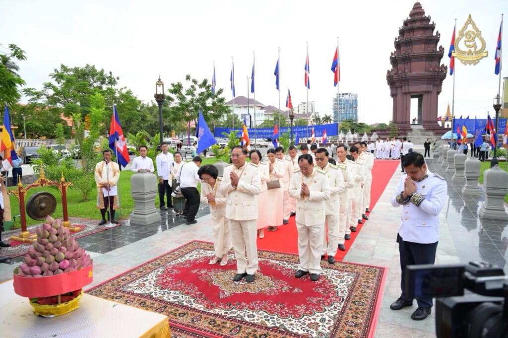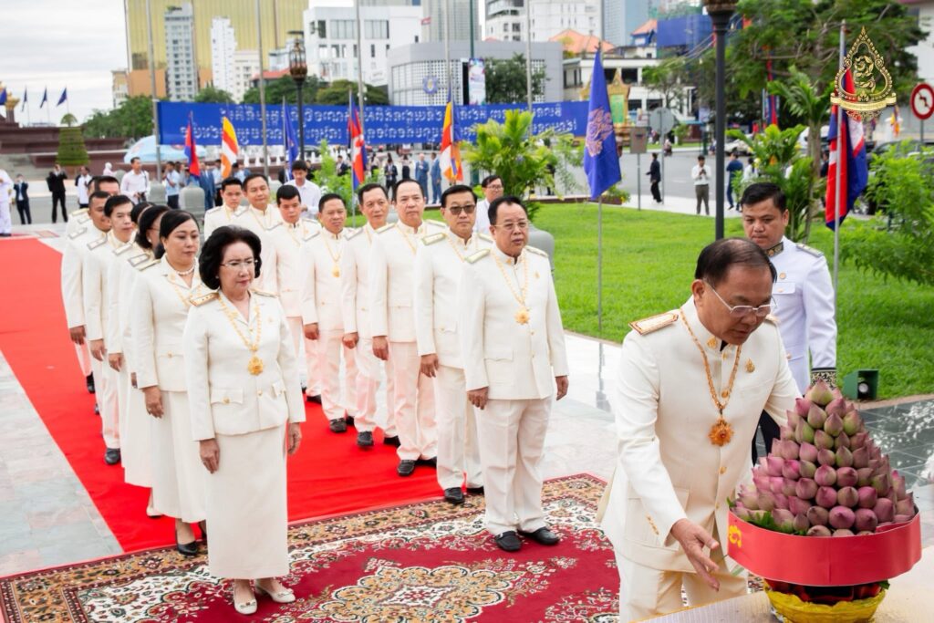 លោកអ្នកឧកញ៉ា លី យ៉ុងផាត់ ដឹកនាំគណៈប្រតិភូសមាគមឧកញ៉ាកម្ពុជា អញ្ជើញដាក់ក្រពុំបិណ្ឌផ្កាឈូកគោរពរដ្ឋធម្មនុញ្ញ ក្នុងឱកាសខួបលើកទី៣២ ទិវាប្រកាសរដ្ឋធម្មនុញ្ញ