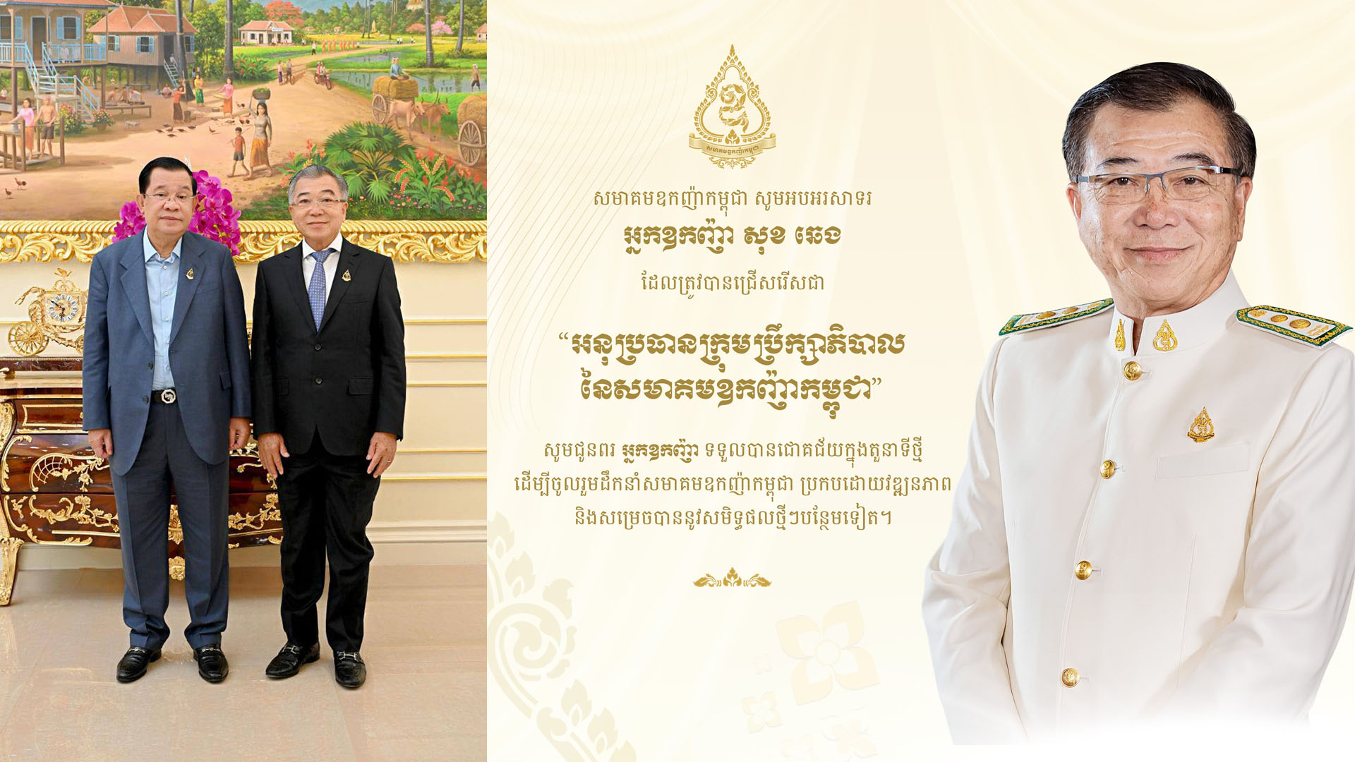 សមាគមឧកញ៉ាកម្ពុជា សូមអបអរសាទរ អ្នកឧកញ៉ា សុខ ឆេង ដែលត្រូវបានជ្រើសរើសជា «អនុប្រធានក្រុមប្រឹក្សាភិបាល នៃសមាគមឧកញ៉ាកម្ពុជា»