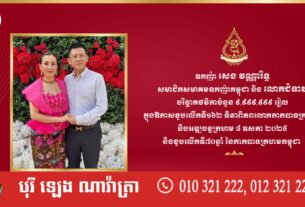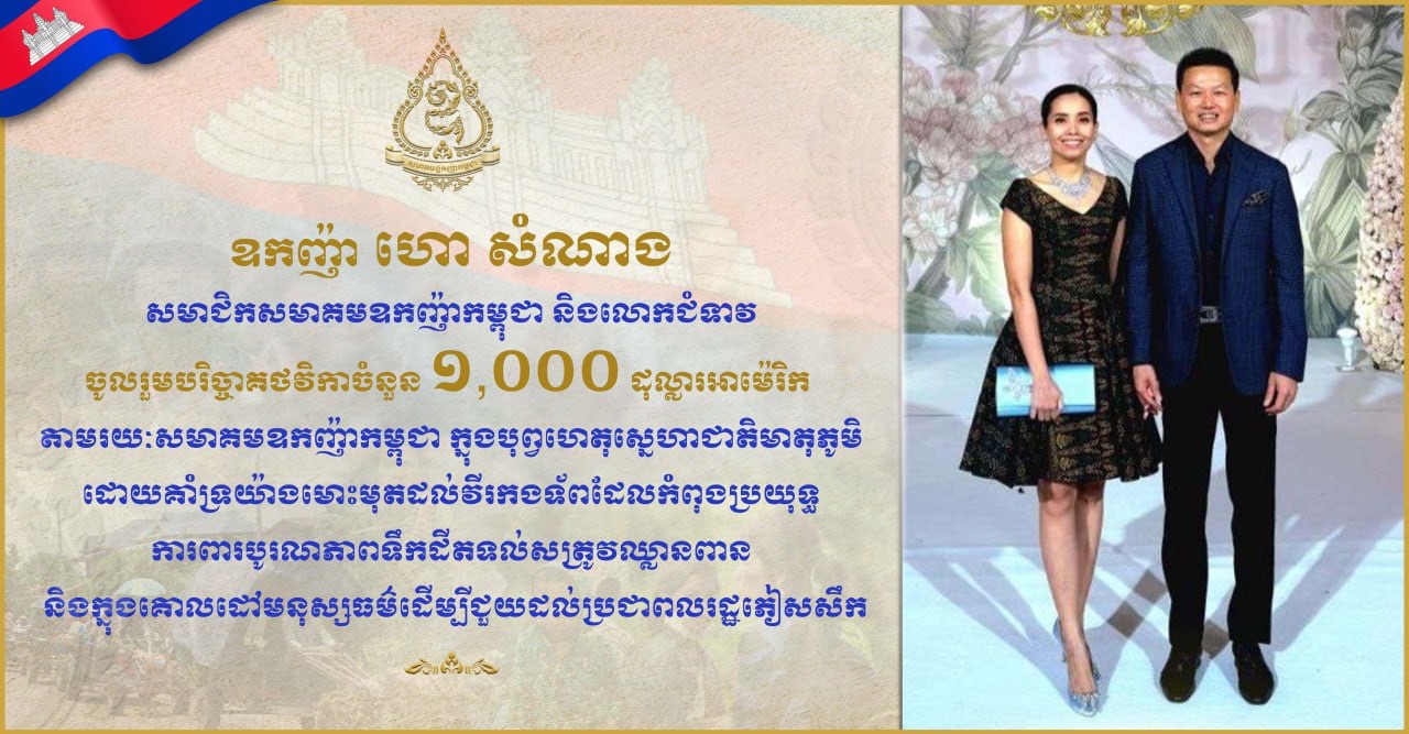 ឧកញ៉ា ហោ សំណាង និងលោកជំទាវ ចូលរួមបរិច្ចាគថវិកា ១,០០០ដុល្លារ តាមរយៈសមាគមឧកញ៉ាកម្ពុជា គាំទ្រយ៉ាងមោះមុតដល់វីរកងទ័ពជួរមុខ